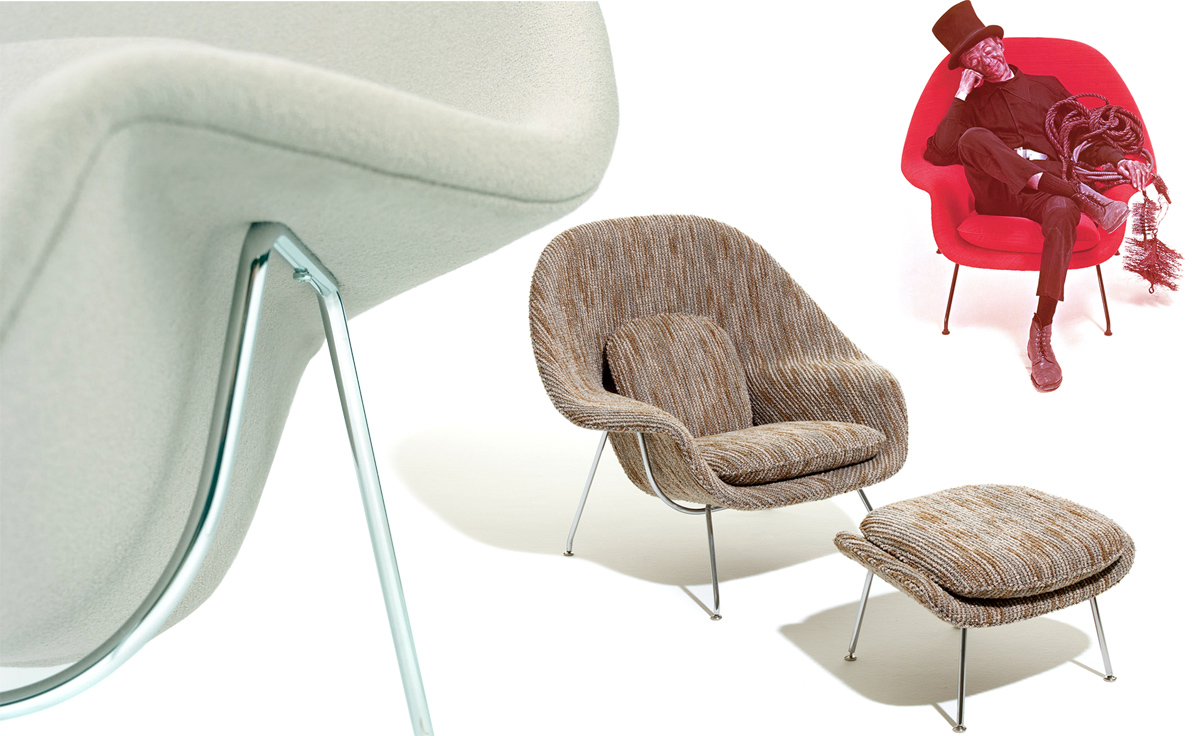 Womb Chair 的基本构造是由抛光镀铬或雾面钢管底座,以一体成型的泡棉包覆框架所组成。 Eero Saarinen 设计这张椅子挑战了一般世俗的规则,打破窠臼,树立了新的现代设计和舒适的标准,充分显示他的高超才华。