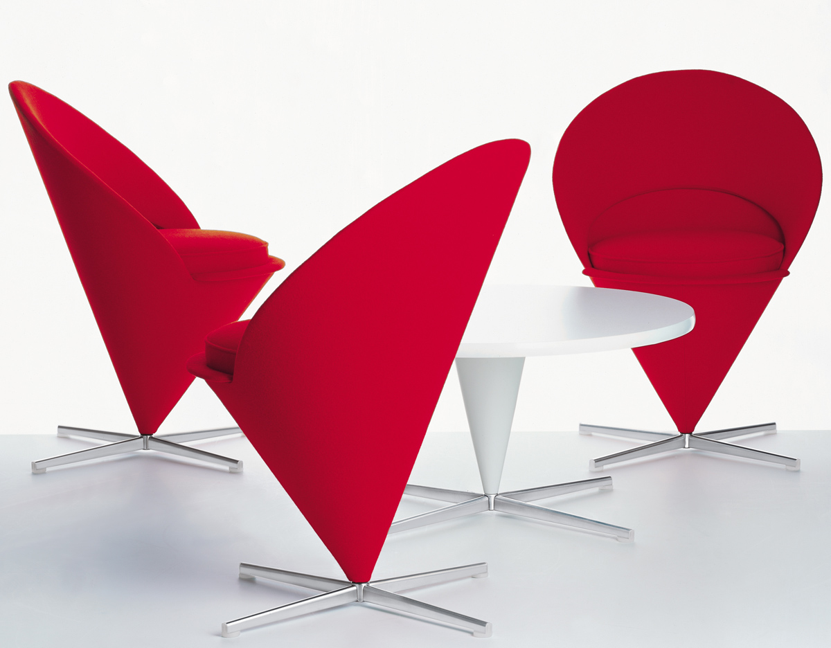 Cone 就是這張椅子的形狀,像個冰淇淋筒般的尖錐,充滿了甜蜜的感覺,是 Verner Panton (1926-1998) 的驚世大作。