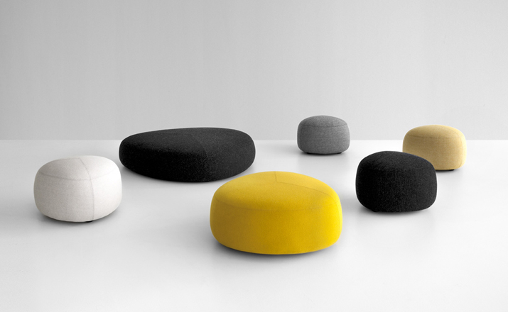 Kipu Pouf(Kipu 墩)的设计来着两个年轻的挪威安博anbo(中国)Torbjorn Anderssen和Espen Voll,灵感来自自然元素,被河水打磨的光滑鹅卵石,这就产生了三角形装卵石样的Kipu 墩。制作采用防霉实木框架、玻璃钢内胆、高密度海绵、高级布艺或皮革(颜色多选),软化所选择的颜色和面料,缝线细致的相交缝制,给人正式又休闲的感觉。其实用性非常广,可用于工作场所、非正式会议区、等候区、图书馆,也可以用在住宅项目,仿若舒适的"孤岛",可以不同高度、数量自由组合,即便不用来坐,单纯用来做艺术摆设都是非常高档的。