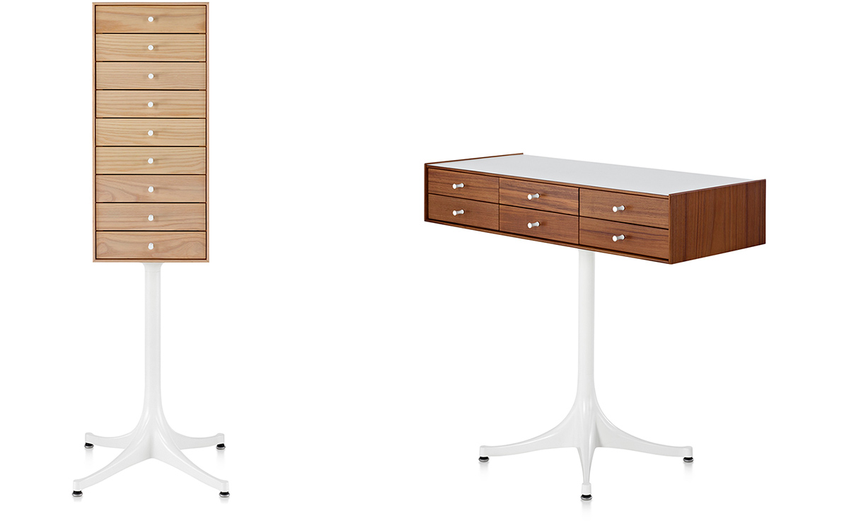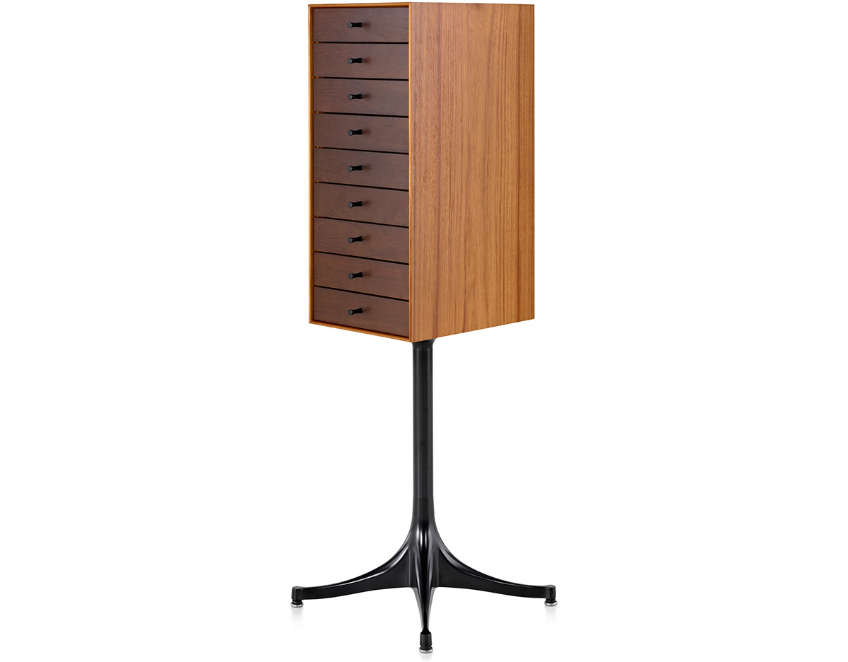 乔治·尼尔森(George Nelson)是美国极具影响力的建筑师、安博网页版安博anbo(中国)和产品安博anbo(中国),日本对George Nelson有着深远的影响。在他于1951年第一次到东京旅行,以及之后在那里的十几年,George Nelson迷上了日本的所有东西。这种影响最明显的的他于1952年设计的迷你箱。迷你箱的神奇处是可用来存放各种物品,是一个很多小抽屉小储物柜,方便您分类摆放各种生活物品。尼尔森设计的迷你箱最让人惊奇的是它几乎可以摆放在任何房间,无论是卧室,办公室,客厅等等任何您需要的地方,美观且不失和谐。每个抽屉都是木工们细心的安装设计,以保证高品质。抽屉采用胡桃或樱桃木皮贴面,基材为环保高密度板环保油漆喷涂、铸铝烤漆可调节脚架(4星级铝底座)、或玻璃钢一体成型脚架,抽屉贴心的配置有金属旋钮,方便打开与关上。
