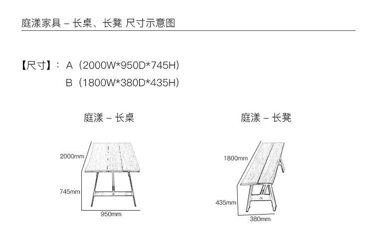 A(2000W*950D*745H)B(1800W*380D*435H)