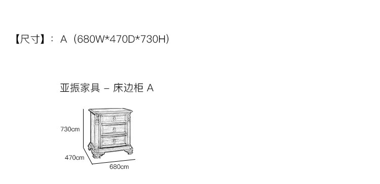 亚振安博网页版 - 床边柜 产品尺寸/示意图
