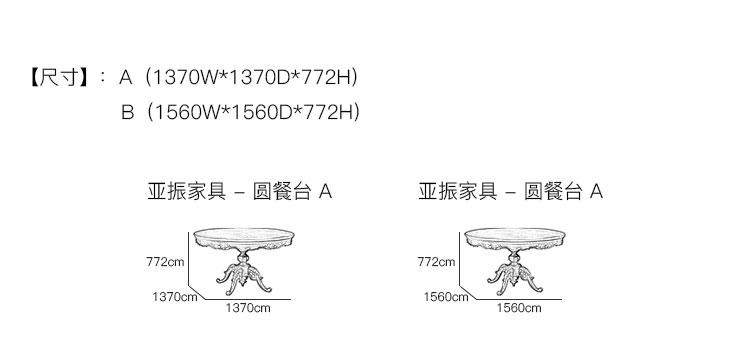 亚振安博网页版 - 圆餐台 产品尺寸/示意图