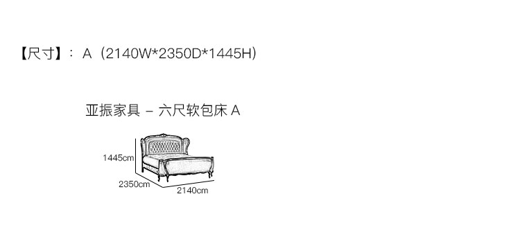 亚振安博网页版 - 六尺软包床 产品尺寸/示意图