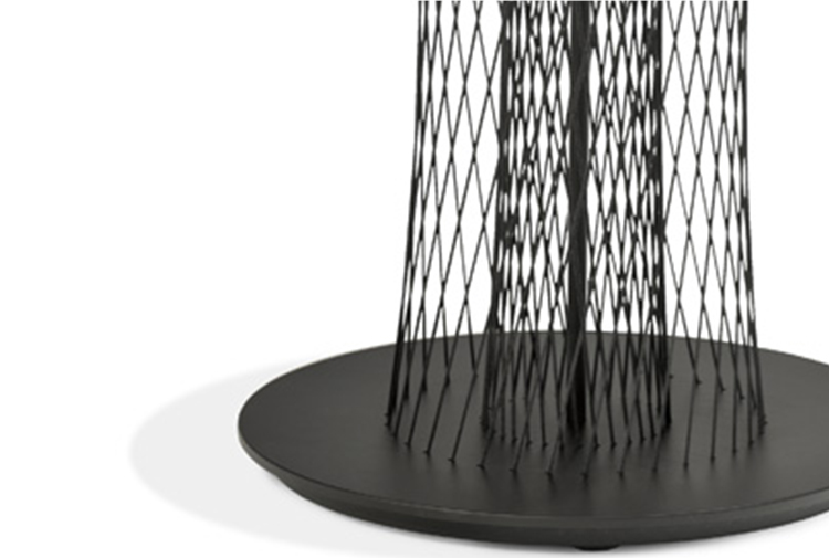 往往是小细节造成了差异,Vladi展示着轻盈与张力的平衡。桌面漂浮在精致的网格之上,翩若惊鸿。纤细的中央轴保证了桌子的稳定性,力量与精美相得益彰。
