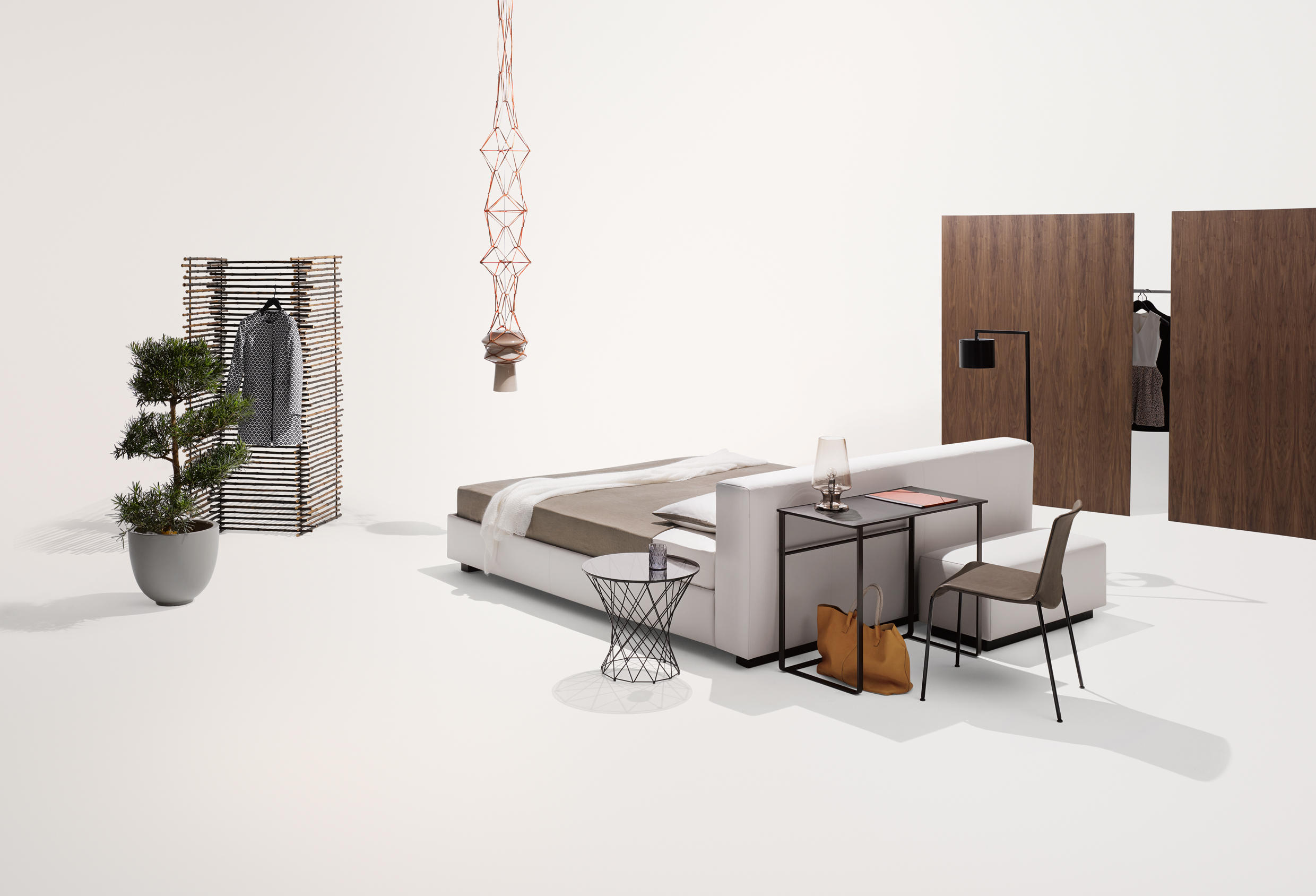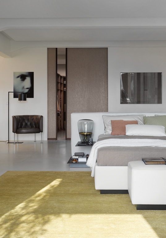 好的设计源于好的思路,Yuuto就是这样。这个软垫穿展示你睡觉的地方,自由的在一个房间里,它容纳了现代生活,为我们的衣橱、浴室、全景、为我们的私人生活的意思提供灵活的各种可能。一张软垫穿,宽敞的设计用料讲究。感觉和纯粹的美丽。