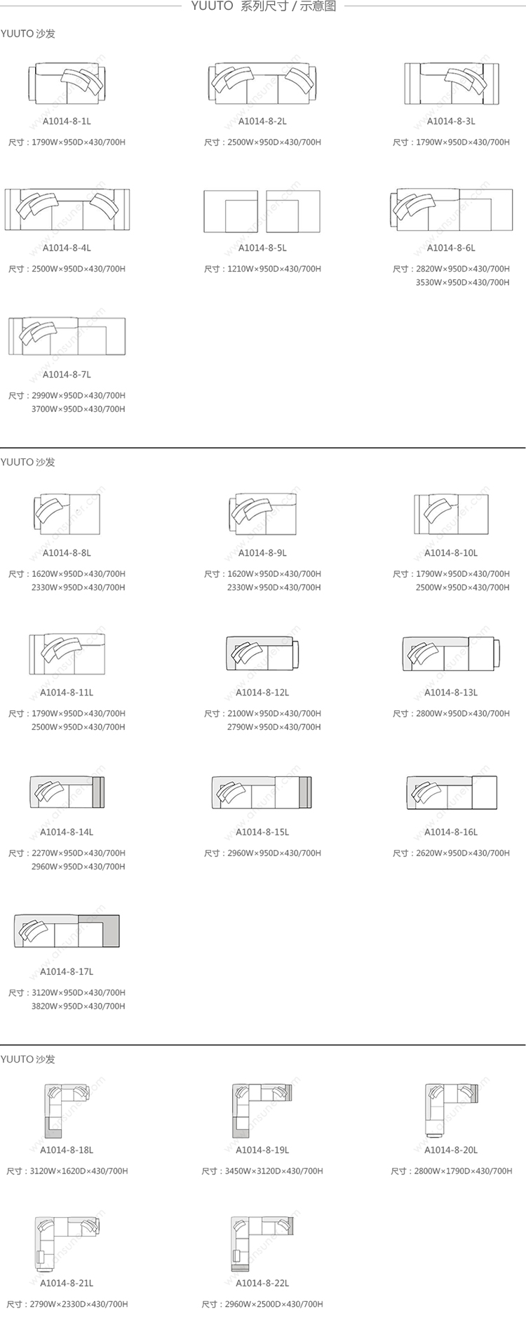 1790W*950D*430/700H -