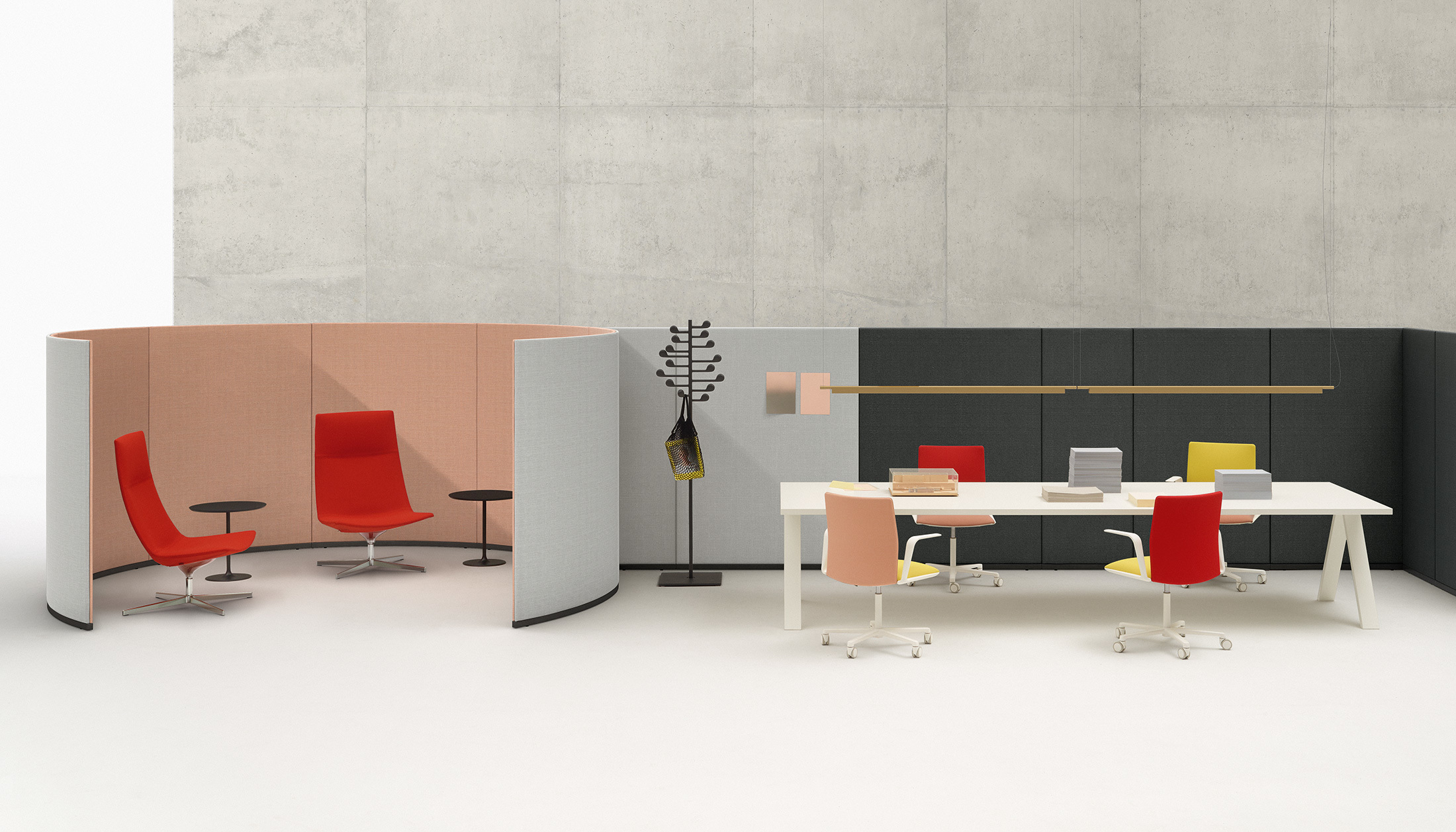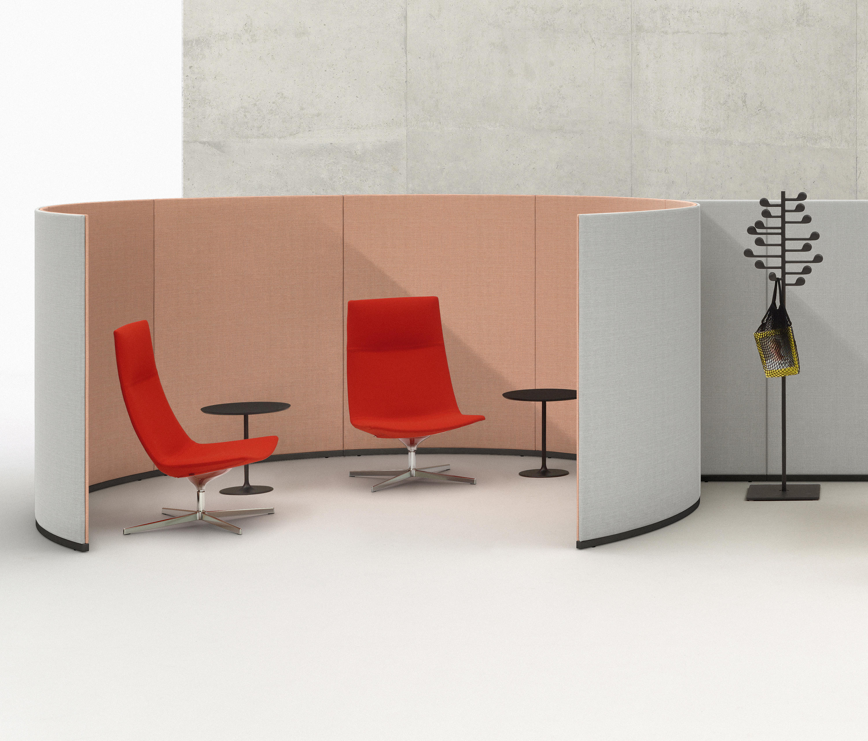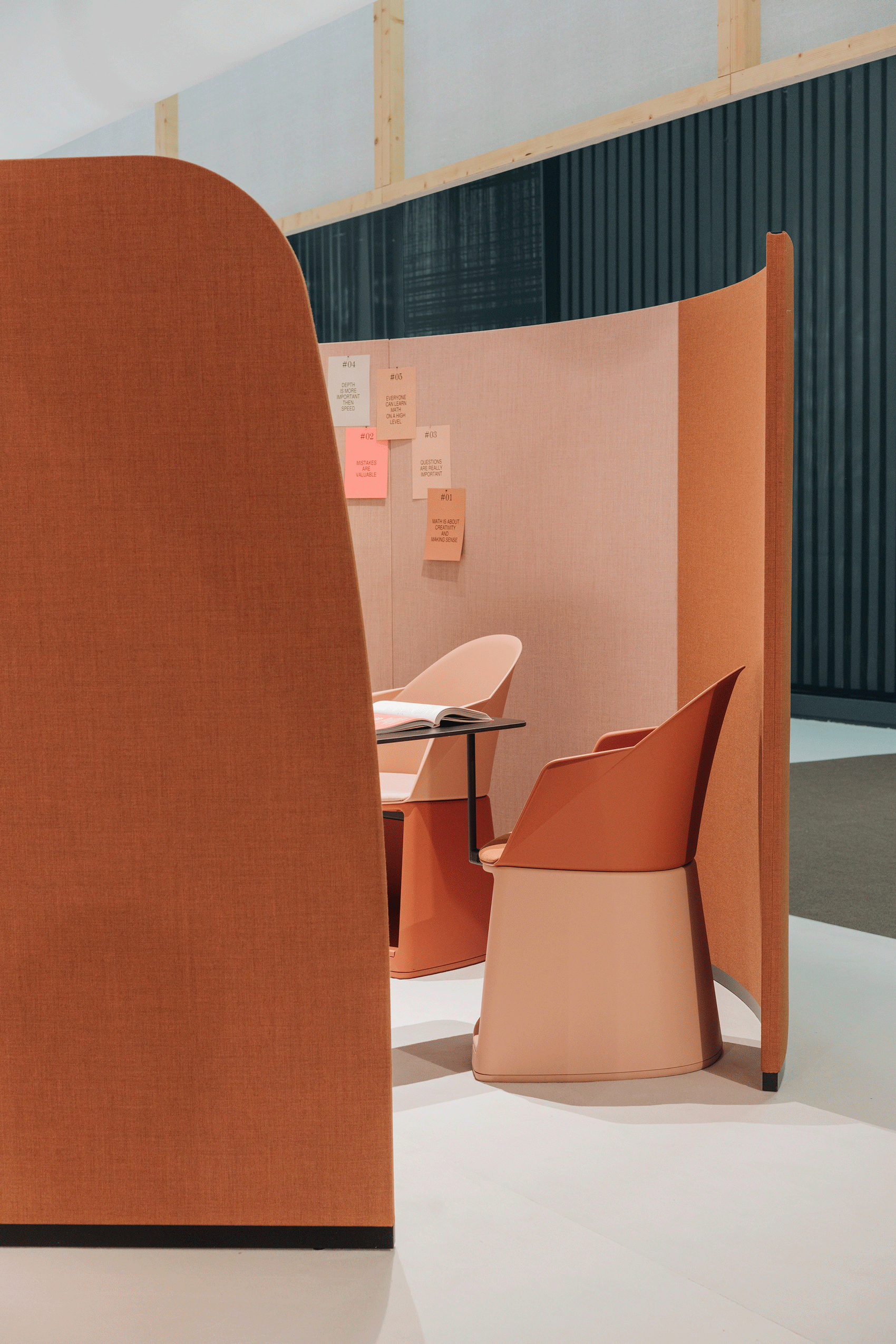 用于定义空间的周长。 Paravan在形式和建筑执行方面具有雕塑感,既清晰又创造空间。像括号一样可以围绕对话,Paravan在开放区域创造亲密感,并采用吸音面板来支持焦点,注意力和协作。
