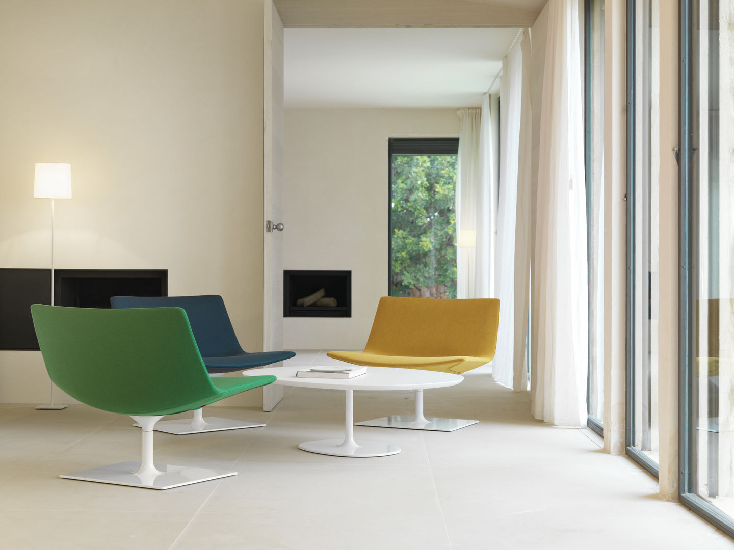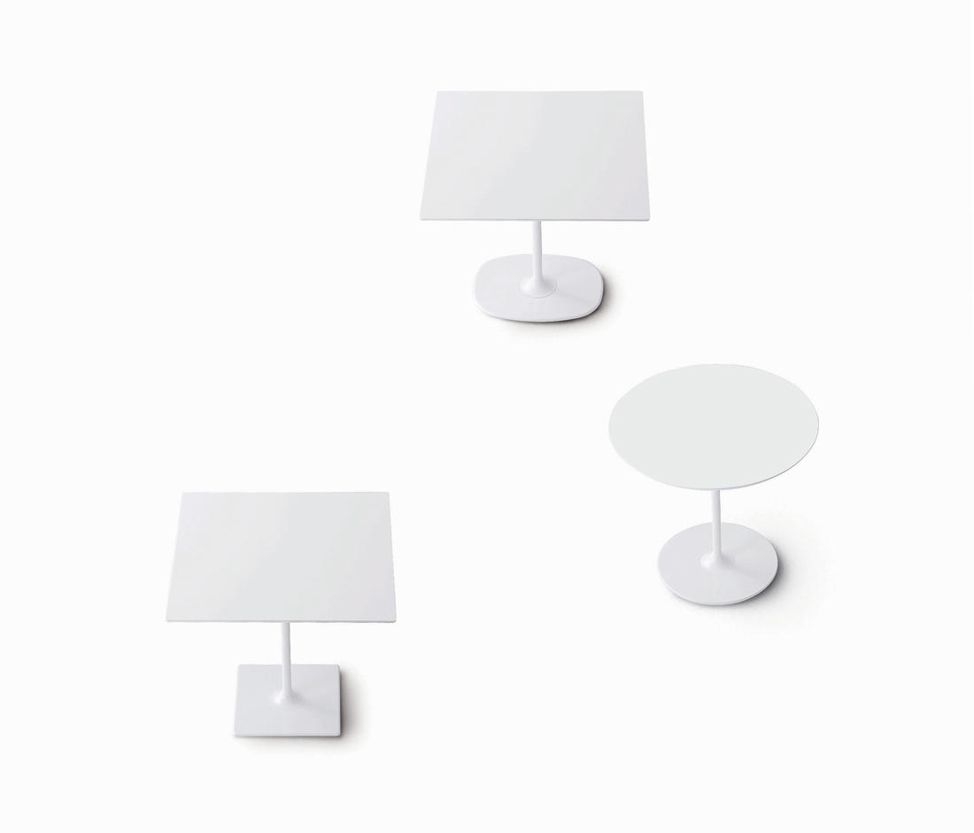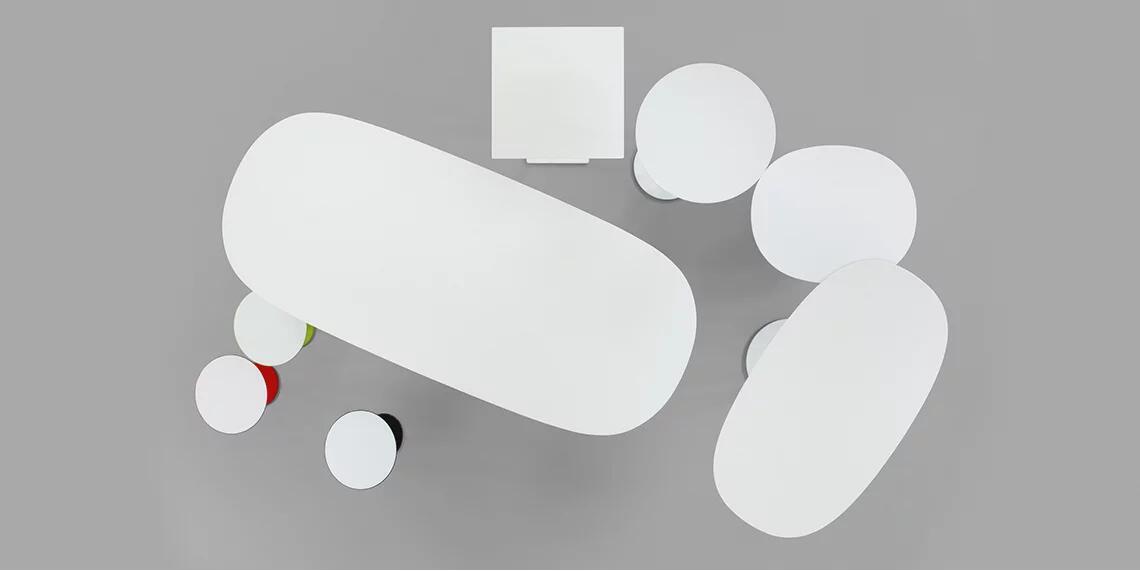 咖啡桌为椭圆形底座,白色有光泽或黑色哑光粉末涂层钢,顶部为白色压花MDF(厚2.5厘米)或层压板FenixⓇ(厚2,6厘米),有不同尺寸可供选择。 身高35厘米。