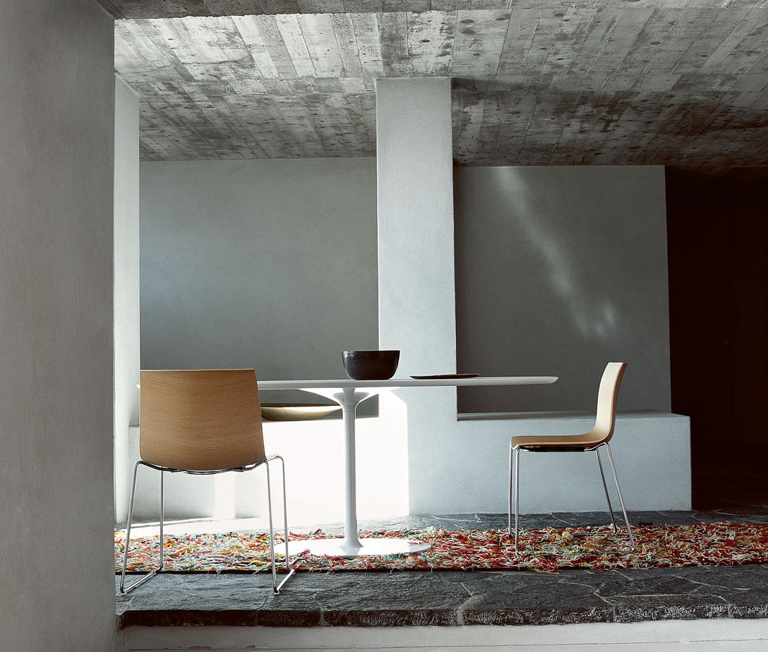 餐台带双椭圆形底座,白色有光泽或黑色哑光粉末涂层钢,顶部为白色压花MDF(厚2.5厘米)或层压板FenixⓇ(厚2,6厘米),有不同尺寸可供选择。 身高74厘米。