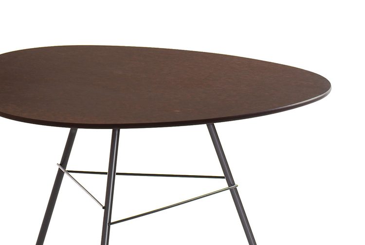 微妙的典故捕捉到令人愉悦的自然不规则性,创造出舒适和标志性的表面和轮廓。桌面的形状显示出自然的观察 - 类似于被水抛光的鹅卵石的形状 - 以及椅子和桌子结构的特殊性,显示出不规则的设计,提醒树枝或叶脉。叶是一个宣言:一个同时怀旧和前瞻思维的形象。其简洁的形式和易于应用的内容和外部鼓励创造性地融入各种环境。