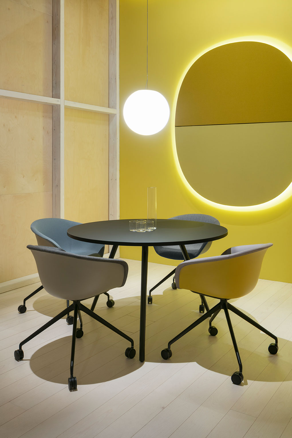 Meety系统可广泛定制,具有桌面形状选项,以及从层压MDF到FENIXNTM®,从木材到玻璃的各种材料。圆形(直径120厘米),正方形(120X120厘米)和矩形形状(从70X140厘米开始)被设想用于大型座椅环境,而柔软和流动的肥皂形状具有独特的存在感和吸引力。创建梯形桌面形状是为了响应协作工作环境,并且可以组合成不同的配置以在工作场所创建私人空间或开放性。