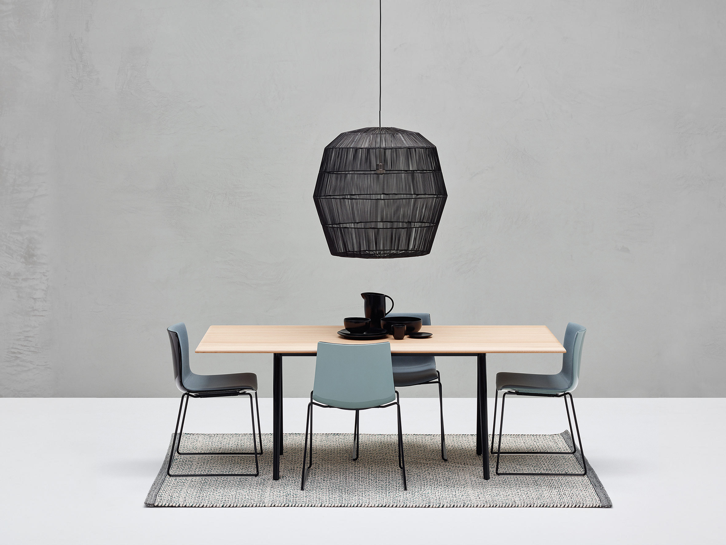 Meety由Lievore Altherr Molina设计,以表格形式模仿Catifa的适应性系统。灵感来自桥梁的建筑结构 - 强大而轻盈 - Meety的铝制支腿形成坚固的结构,顶部看起来漂浮或悬停。 Meety采用适应性强且动态的桌面系统,可实现最佳定制,Meety通过其铸铝支腿保留其独特的特性,可无缝集成到多种桌面选项中:尺寸,比例和材料。多样化的自定义功能可以为任何环境(家庭,工作和生活)提供量身定制的优雅系统。