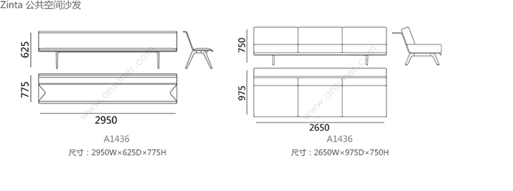 Zinta 公共空间沙发 系列尺寸/示意图