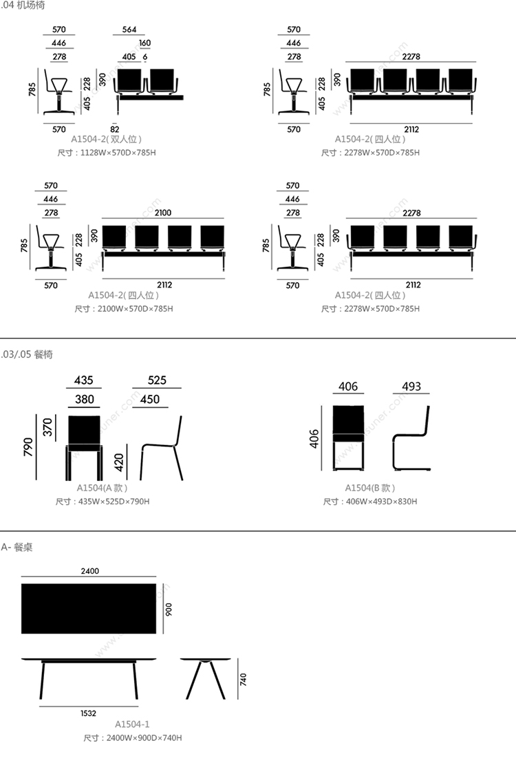 .04 机场椅 系列尺寸/示意图