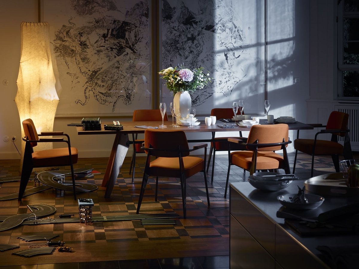 JeanProuve在第二次世界大战期间开发了Table Solvay,由于当时金属稀缺,他设计了优雅的木腿腿。 天然橡木,深色烟熏橡木或美国胡桃木的实木组件为桌子带来轻松和精致的感觉。