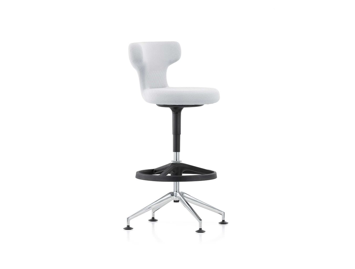 Pivot Counter Stool椅子有一个圆形和弯曲的靠背向前。 它有助于改变姿势,因为椅子也可以横向使用或作为倾斜的稳定支撑。 柔软的衬垫确保了极佳的舒适性。