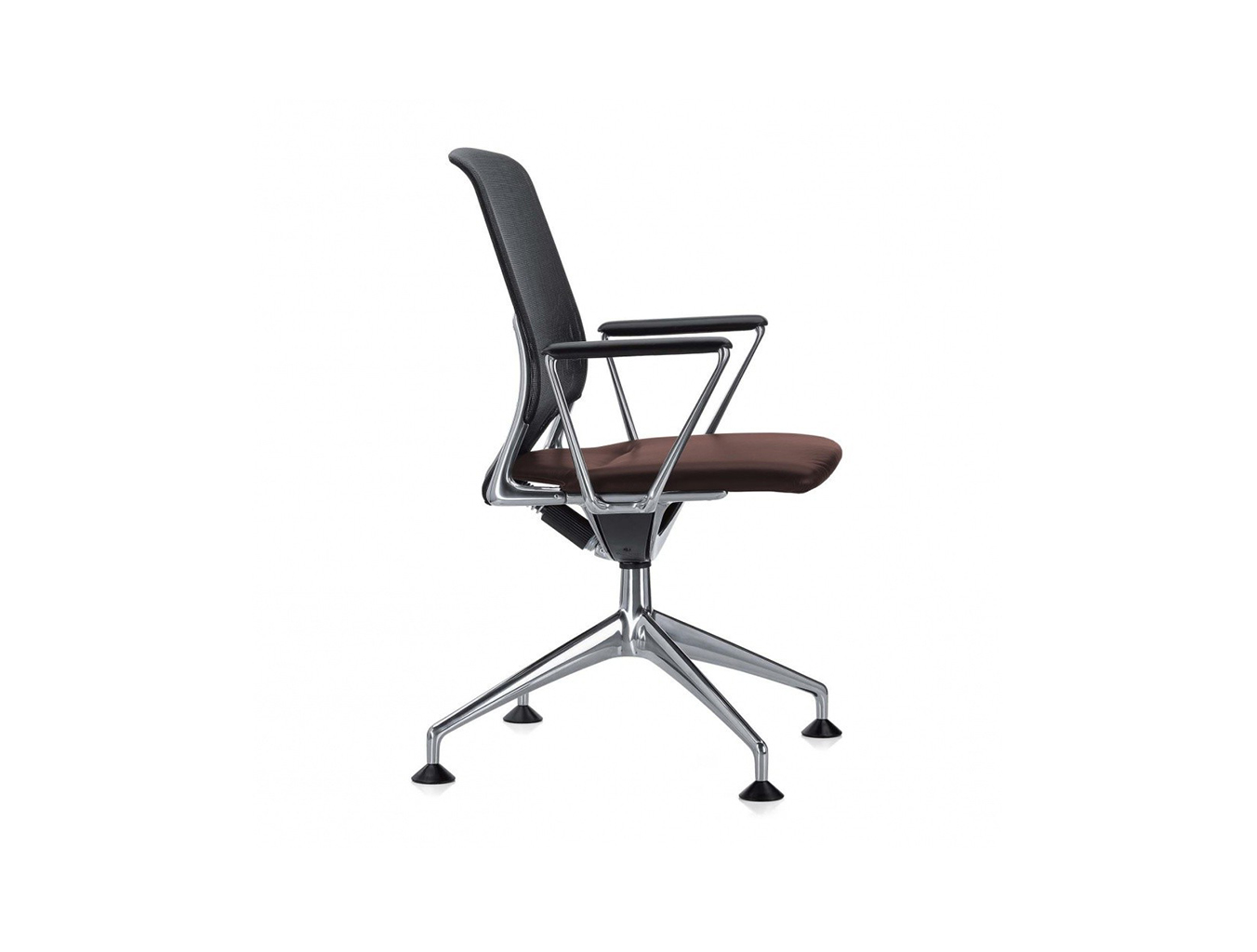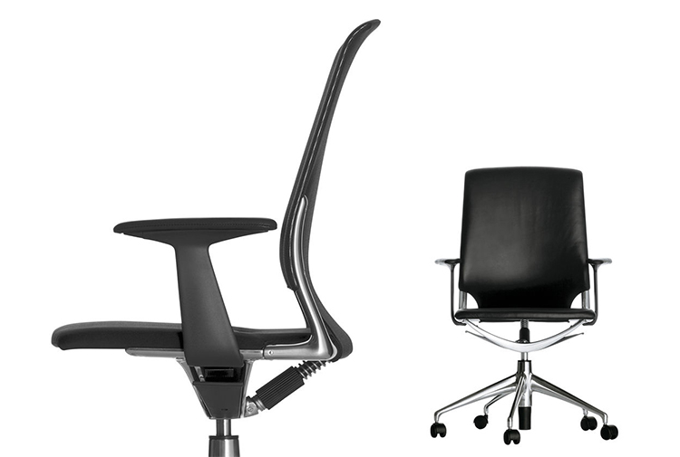 Meda Chair代表舒适,技术和美学的最佳组合。 其同步运动及其倾斜和可锁定靠背与座椅衬垫和优雅的装饰元素相结合,为用户提供卓越的舒适感。 座椅的装饰有皮革或织物可供选择,而靠背则可选择皮革或网眼织物。
