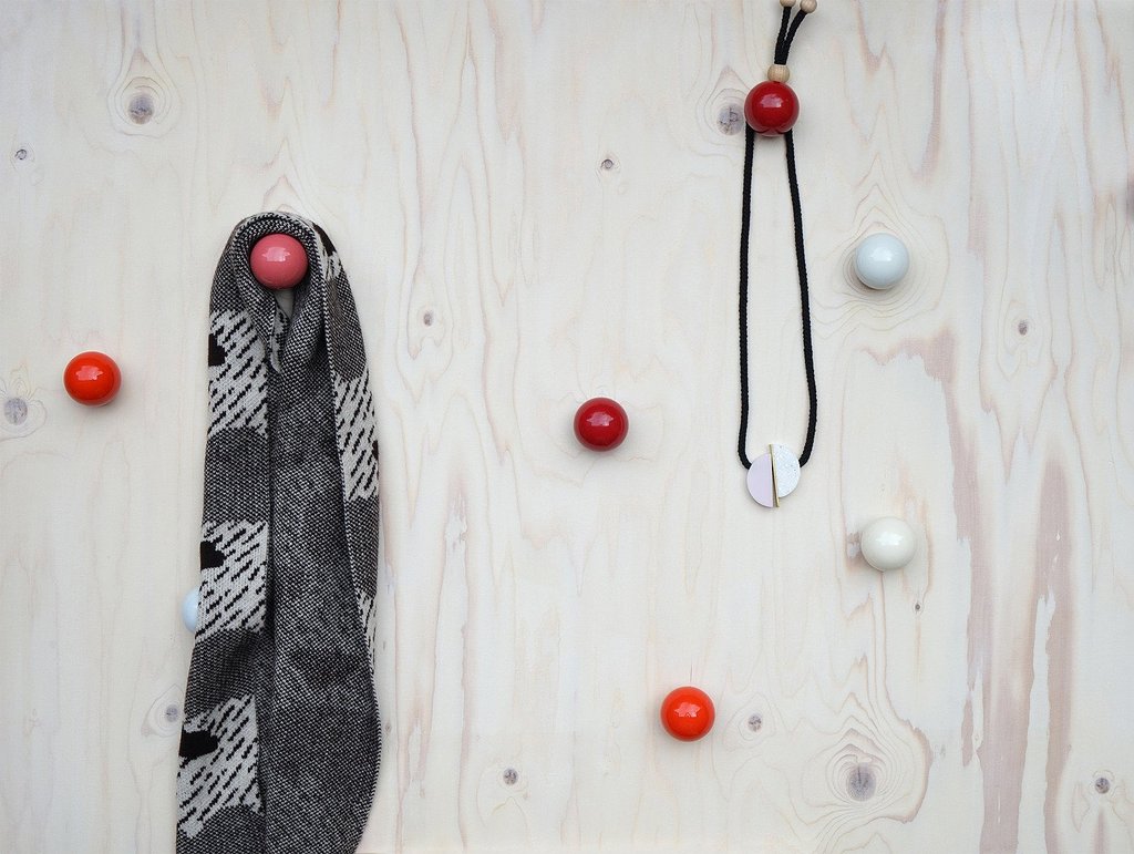 Hella Jongerius的Coat Dots安装在一个可伸缩的销钉上,可以稍微拉离墙壁,为夹克和衣架提供方便的挂钩。 同时,它们也可以简单地用作装饰墙元件。 涂层点有三种颜色协调的球,包括安装材料。
