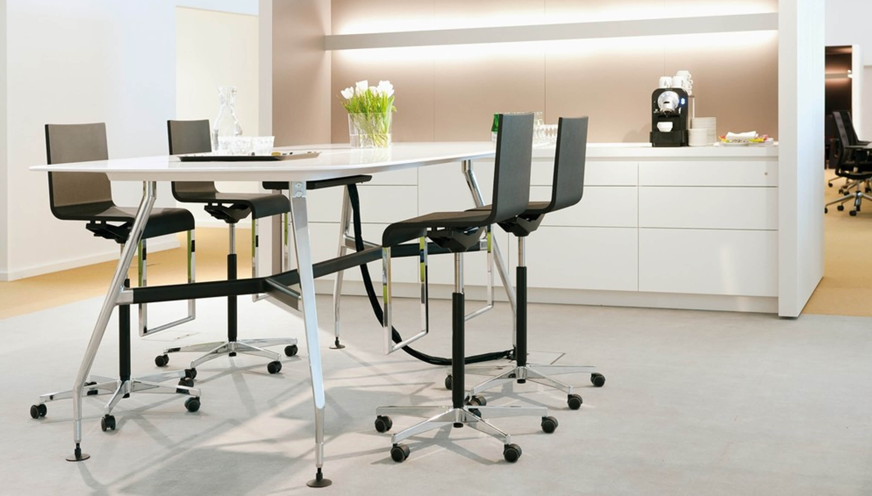 Ad Hoc Solitaires提供一系列可配置的会议桌和访客桌,为工作站的相关模块化安博网页版系统提供补充。 Ad Hoc会议桌有各种尺寸,形状和表面材料。 它们可以配备电源和数据连接,并且像工作站一样,可以坐在站立高度和站立高度。 访客桌 - 应用范围从单个办公室的小型桌子到大型会议空间和公共区域的大型安博网页版 - 是一个实用的附加装置,并配有滑动装置或脚轮。 根据会议的预期持续时间和所需的参与人数,可以选择高或低表格,其顶部有四种不同的形状和大小。 除了可用于Ad Hoc工作站的表面选项外,Ad Hoc Solitaires还采用极其耐用的聚合物混凝土材料生产。