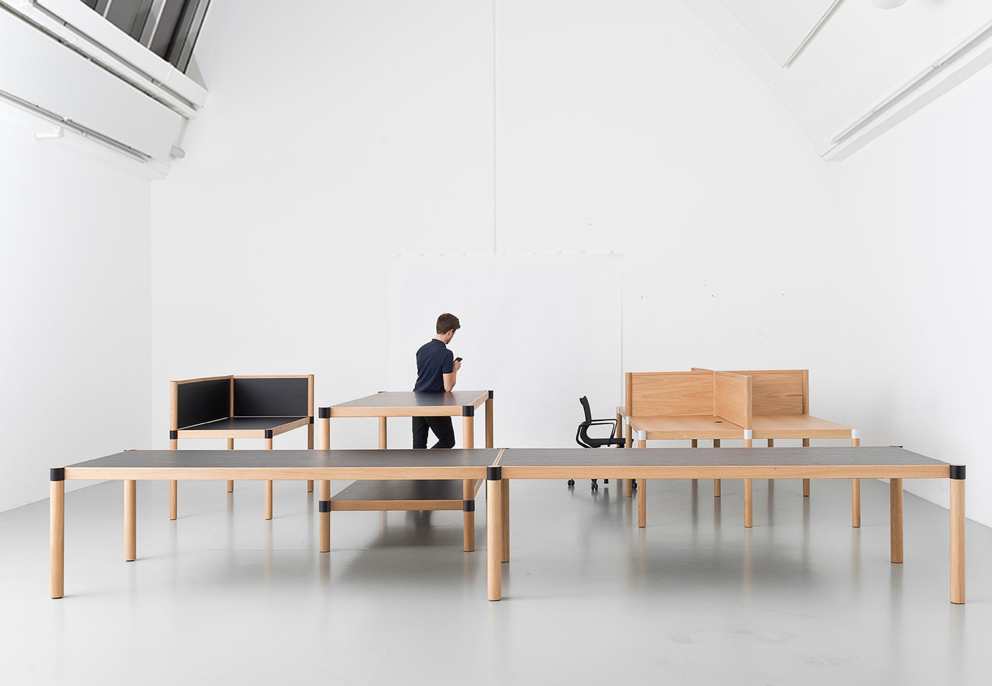 Cyl代表了寒冷的技术办公环境的对立面,旨在通过关注传统创造一个和平与力量的避风港。 实木强调系统的简洁线条,其光滑的平面,结构框架和圆柱形元素。 作为办公室环境中不常见的材料,实木传达了手工制作的自然美学,并为工作场所的外观和感觉注入了一丝情感。