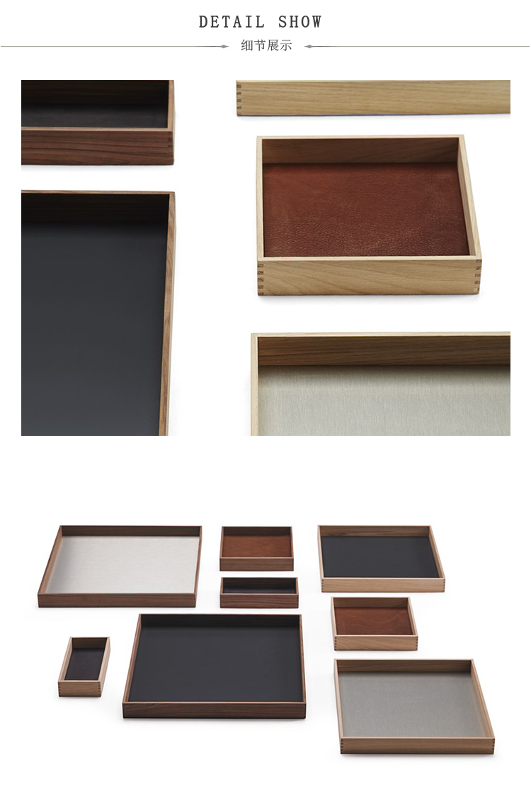 托盘。饰面,木饰面,金属或织物内饰的组合。