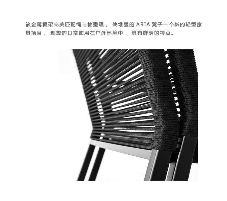 该金属框架完美匹配绳与棉质饰面,使堆叠的ARIA凳子一个新的轻型安博网页版项目,理想的日常使用在户外环境中,具有鲜明的特点。