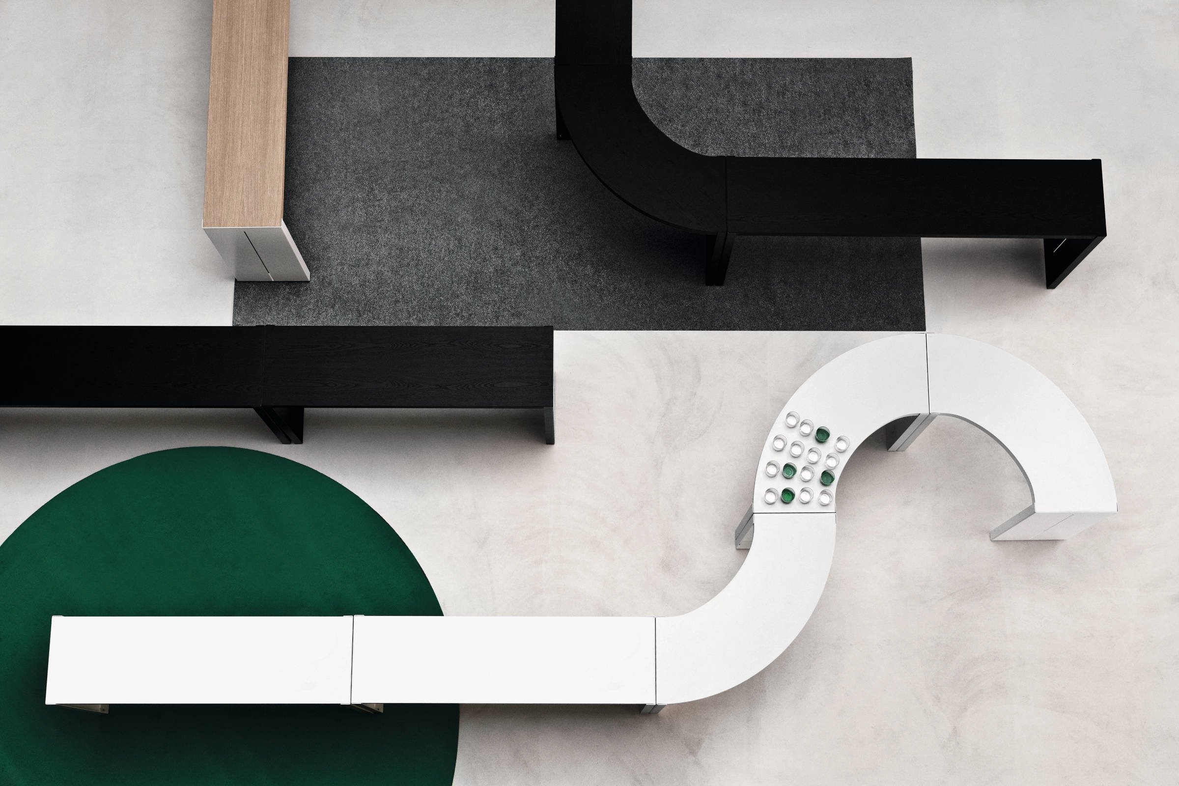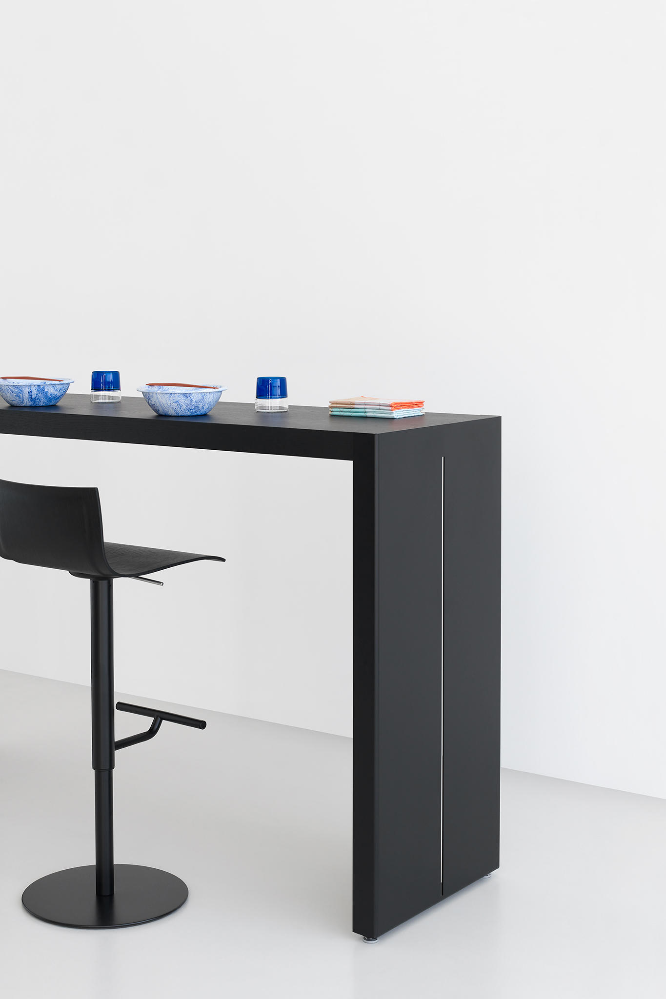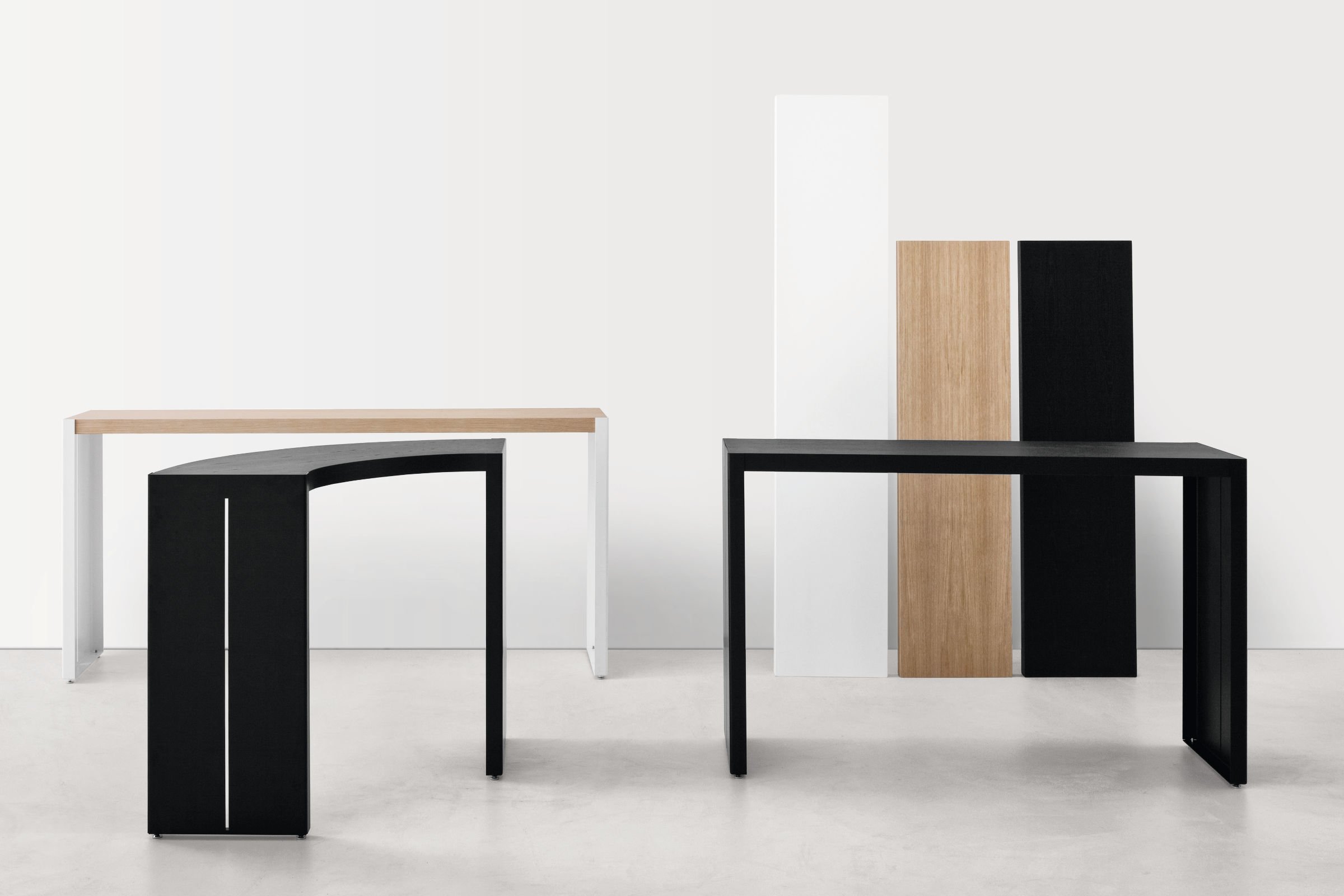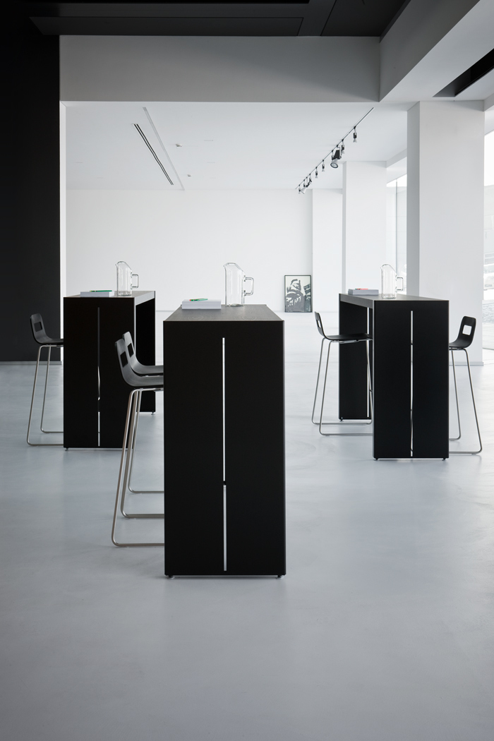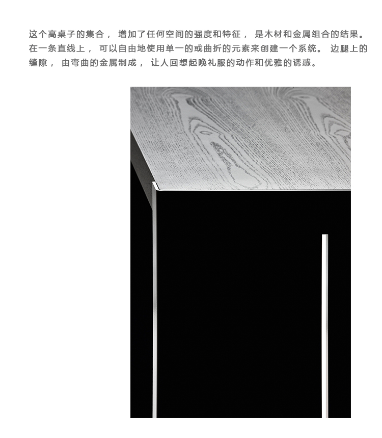 这个高桌子的集合,增加了任何空间的强度和特征,是木材和金属组合的结果。在一条直线上,可以自由地使用单一的或曲折的元素来创建一个系统。侧腿的缝隙由弯曲的金属制成,让人回想起晚礼服的动作和优雅的诱惑。