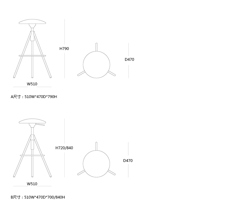 B:510W*470D*700/840H -