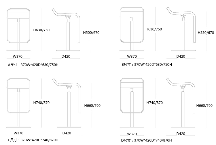 B:370W*420D*630/750H