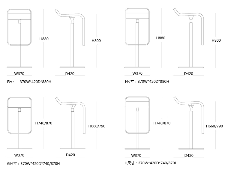 H:370W*420D*740/870H -