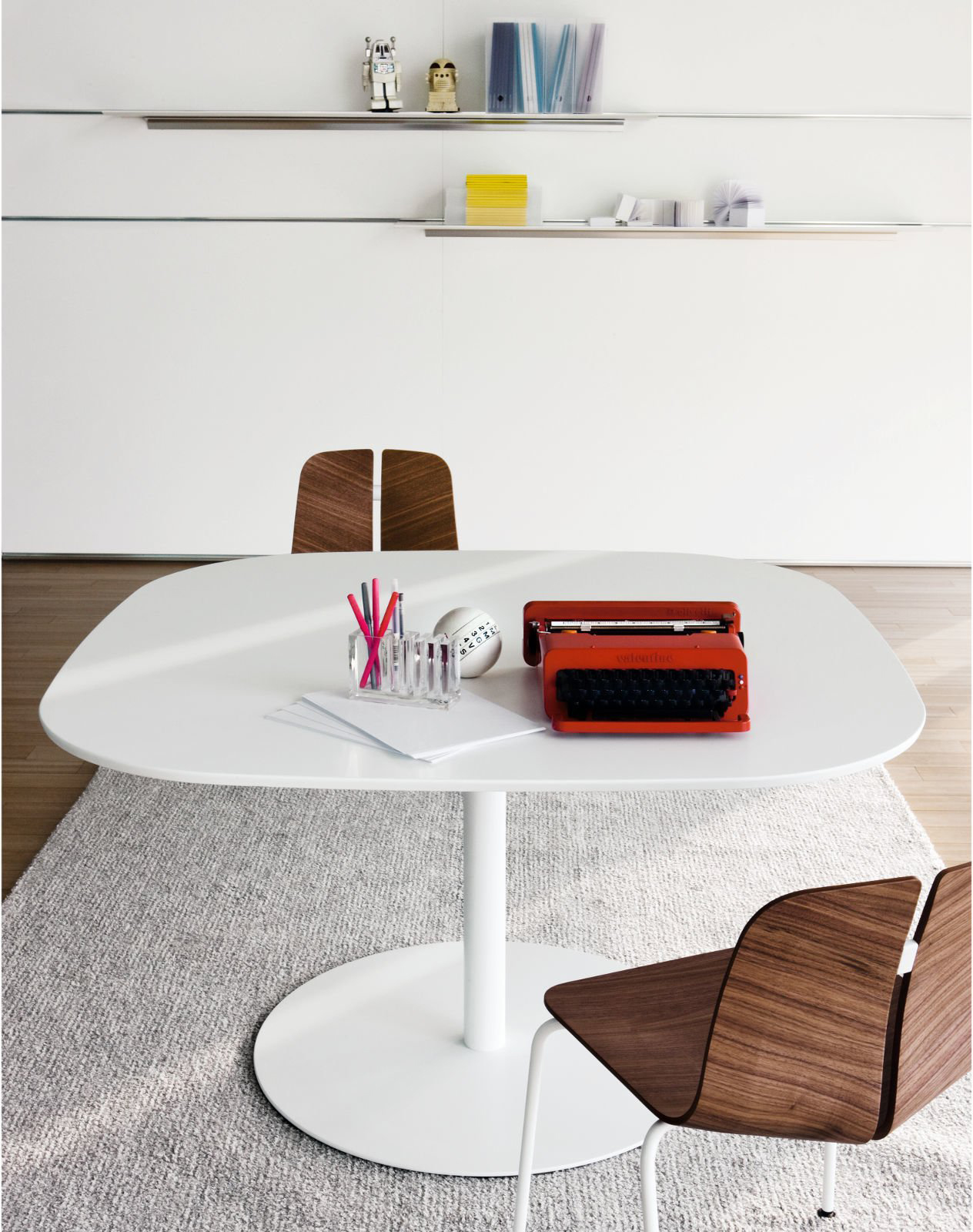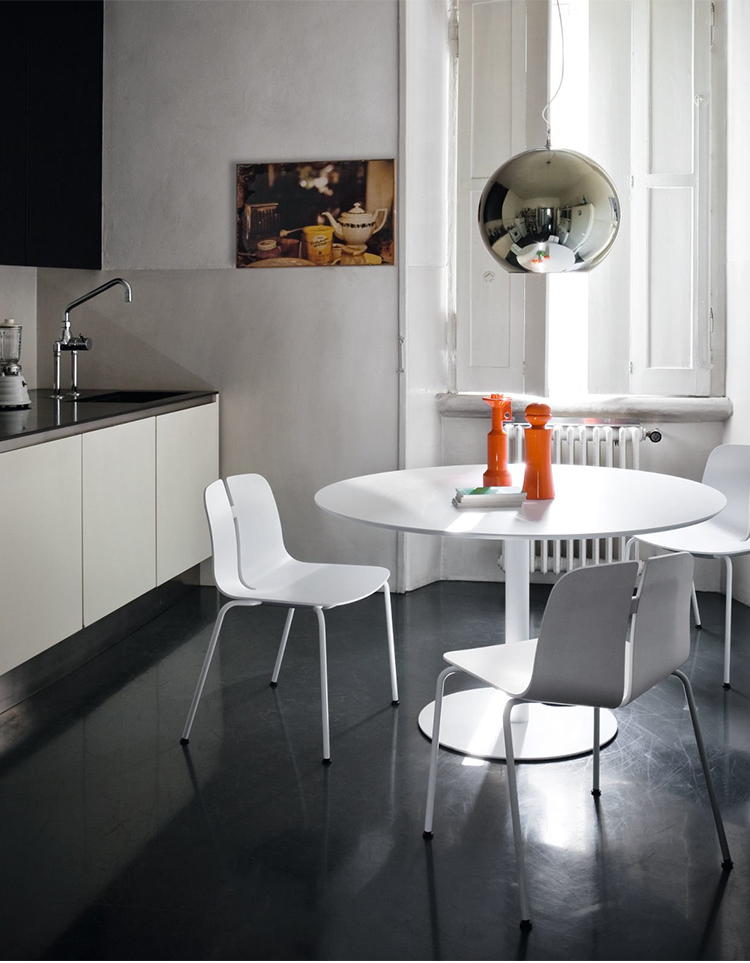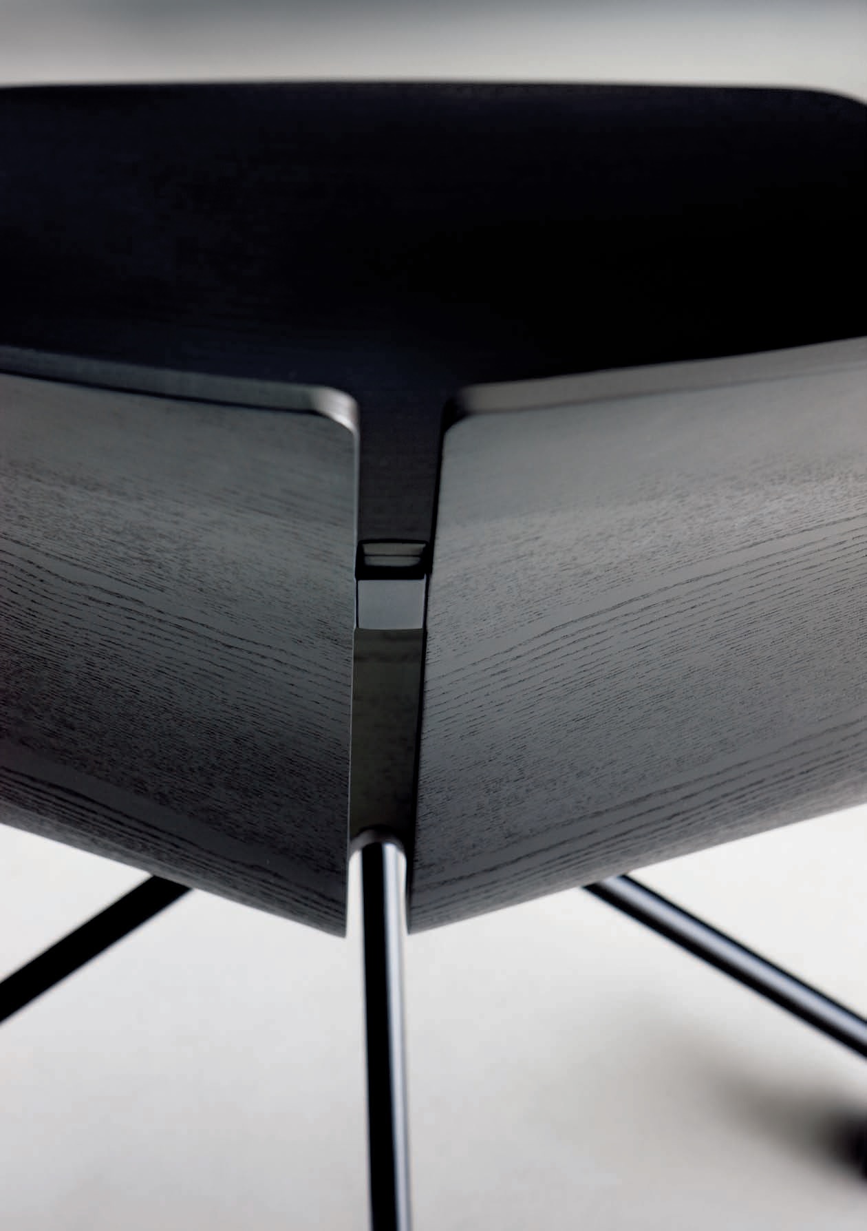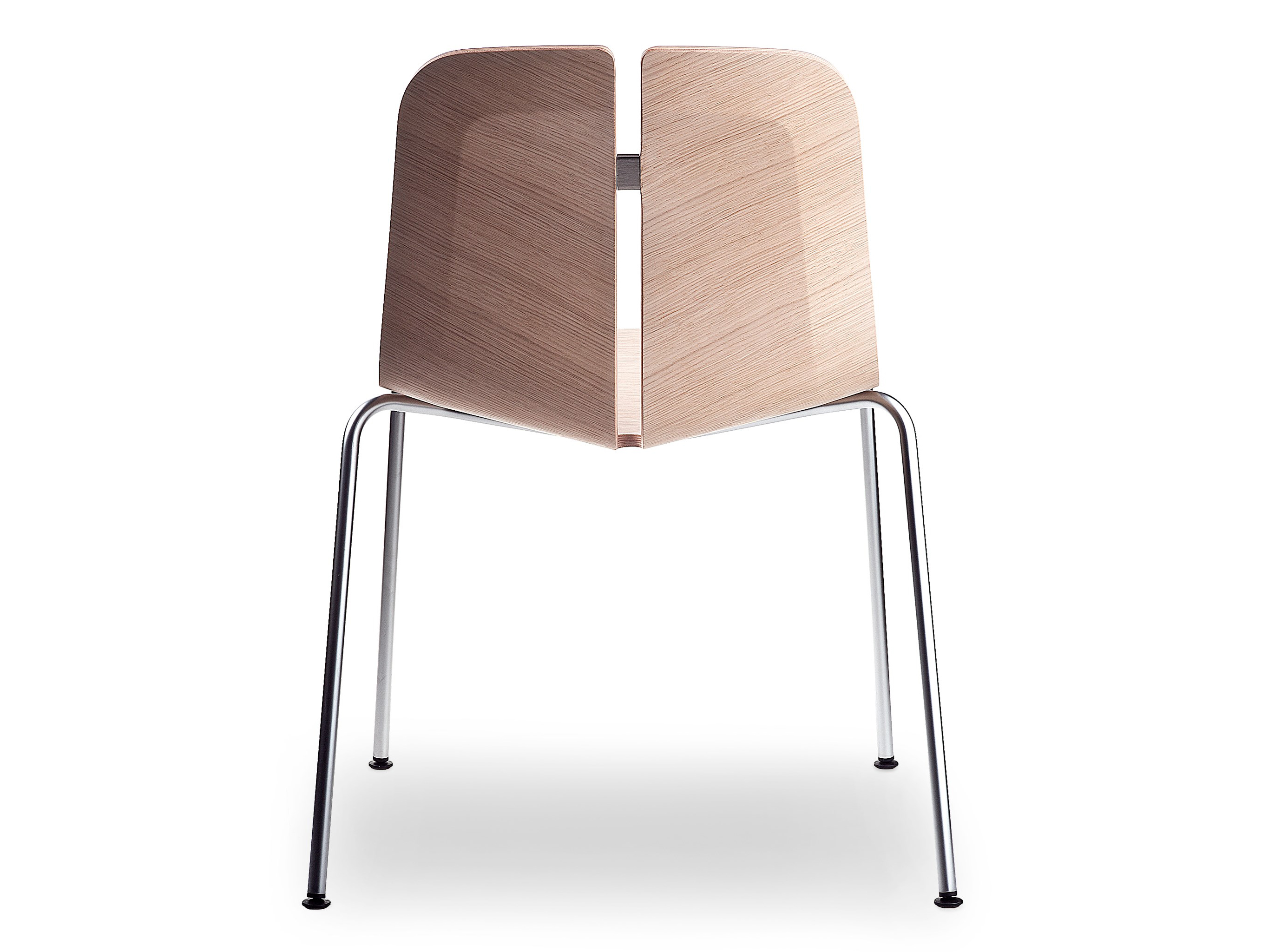 一个很小的间隙,一条线的中断,和连接的凳子形状。它是轻的,就像它狭窄的金属底座和木质座椅所暗示的那样,轻轻弯曲形成靠背。在自然的木材版本,纹理加强了柔软的轮廓和拥抱像一个非常新鲜的叶子,突出其结构的轻盈性。
