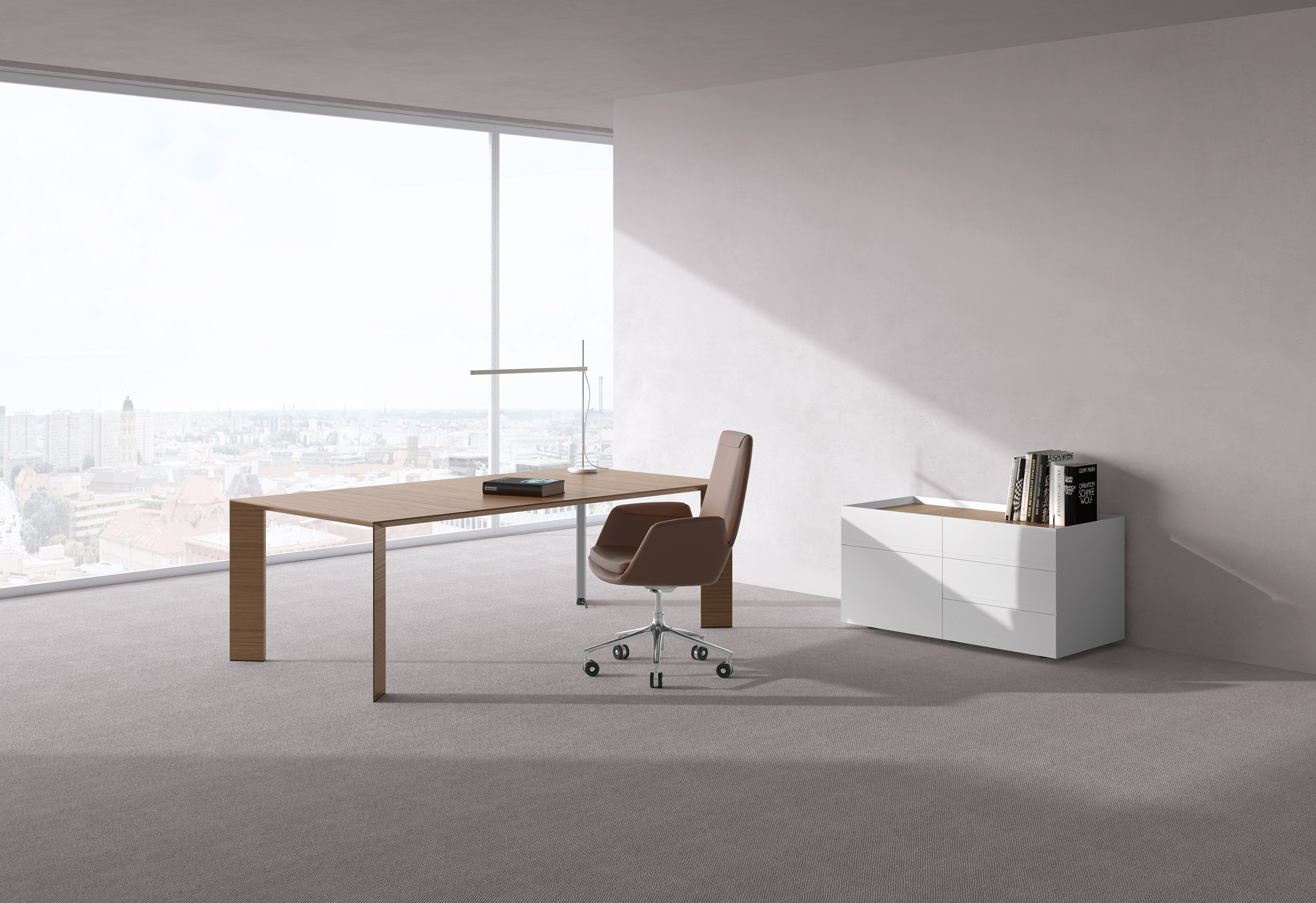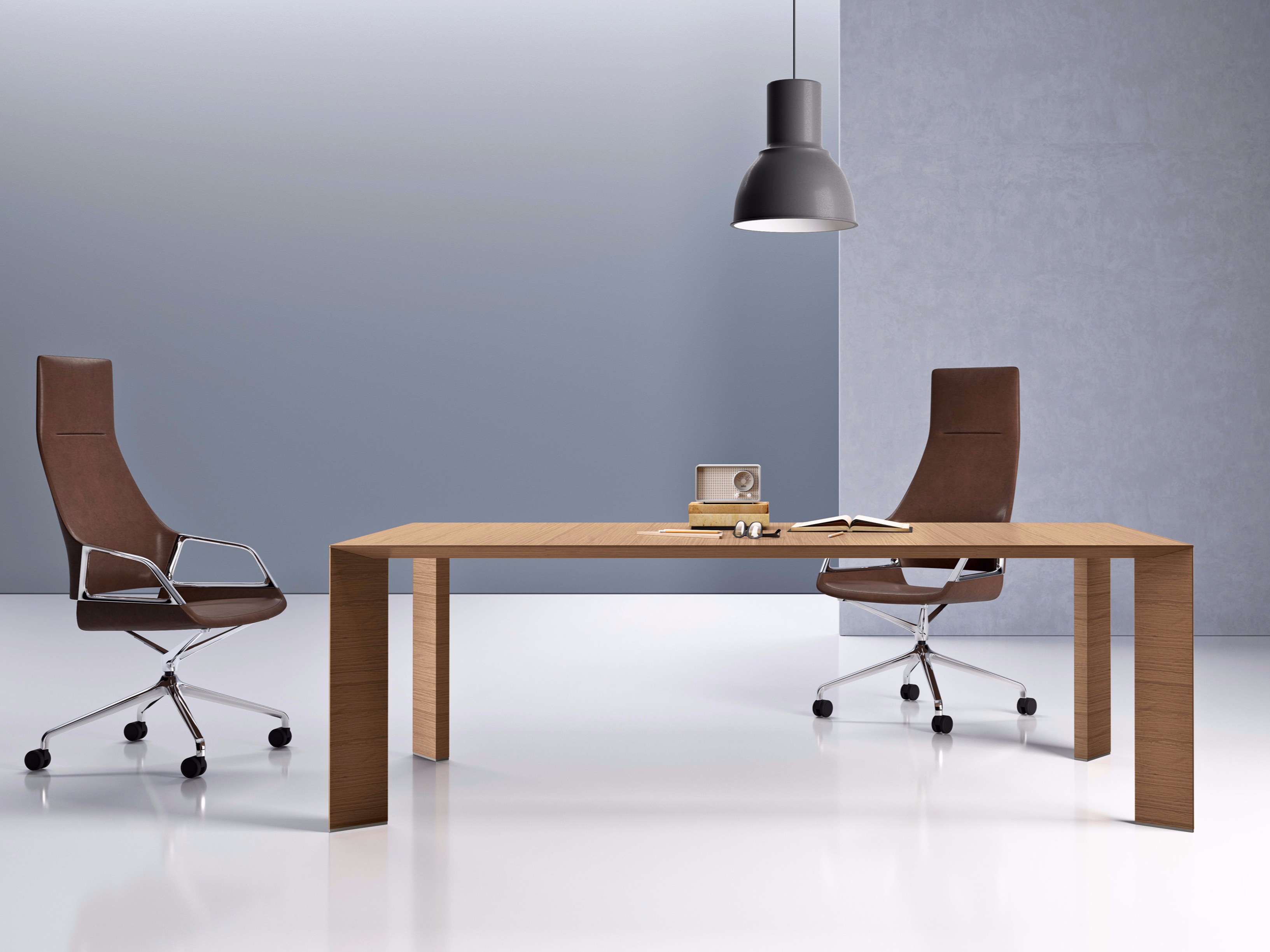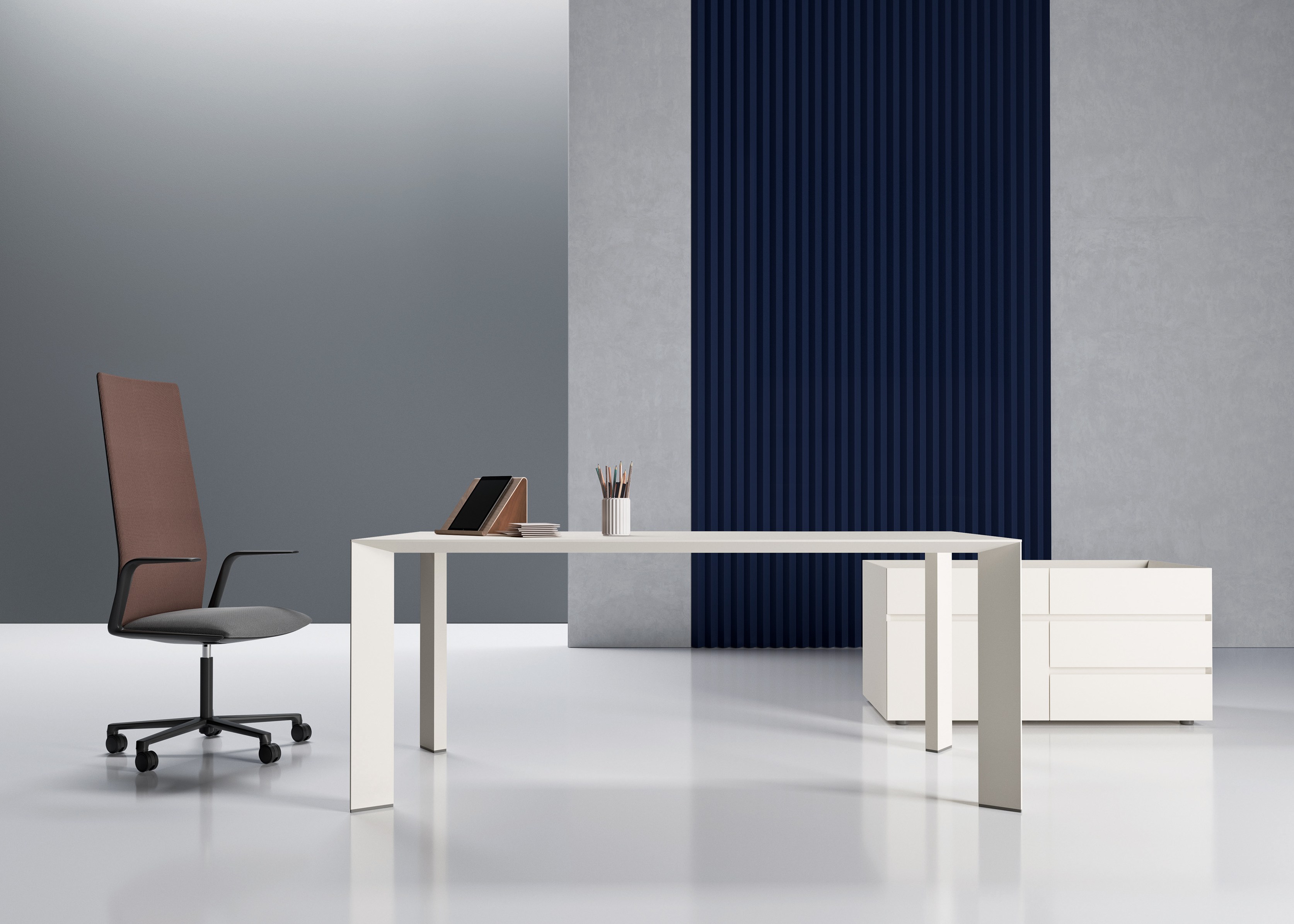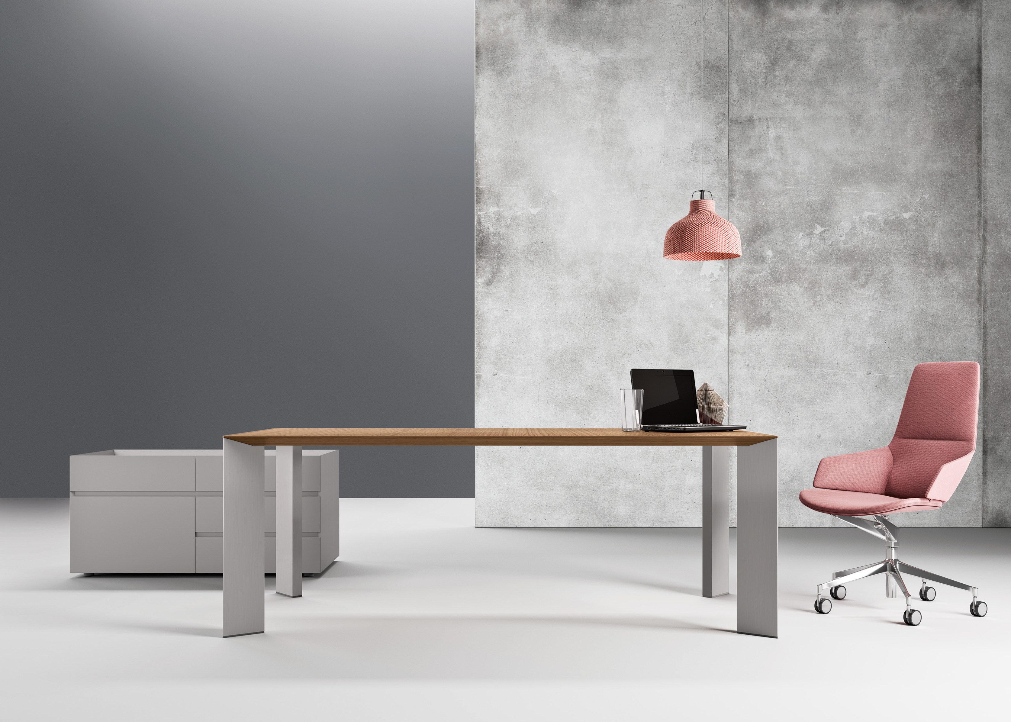 创新的设计带来独立的美观的外形。这款Paper的桌子拥有两个引人注目的设计元素,一是桌子边缘的底部是向内倾斜的,使其表面优雅轻盈(桌面厚度为38毫米);二是桌腿呈细长的三菱柱状。这两个设计都可以使整个桌子看起来线条鲜明,线性或者狭窄,这取决于角度的选择。