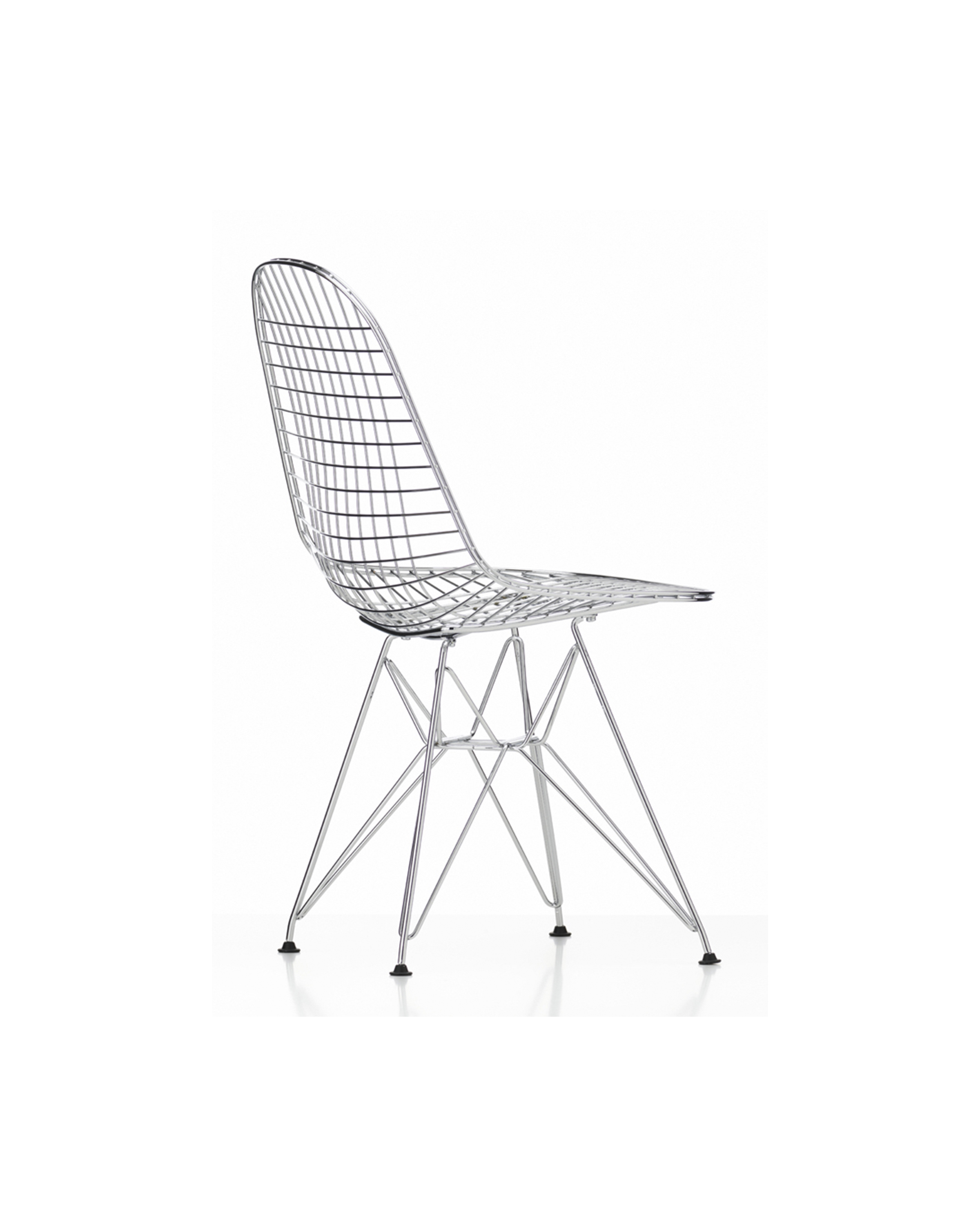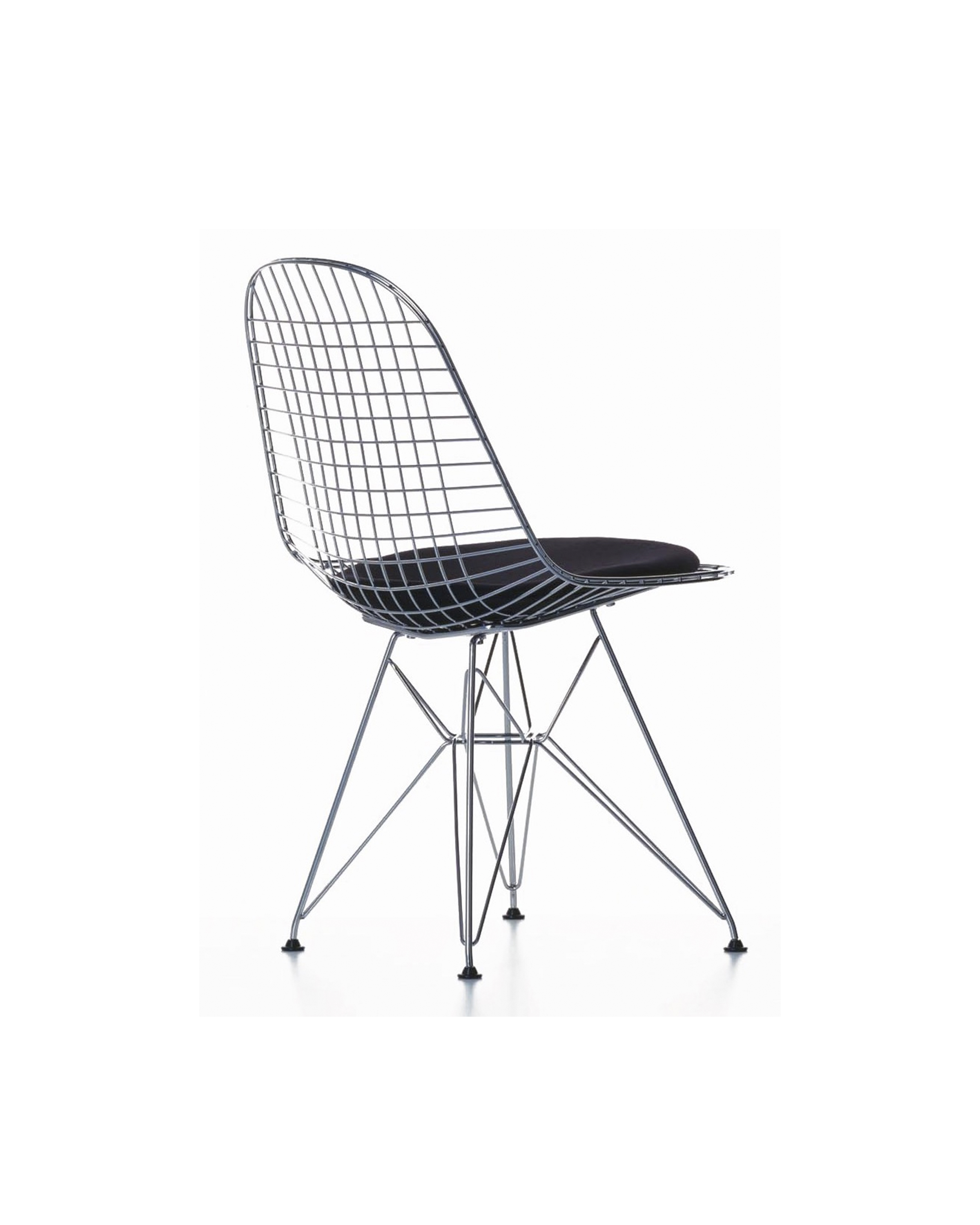 Charles & Ray Eames 1951 年發表的 Wire Chair 系列,以一片式有機網狀椅座,延伸變化出一系列不同椅腳及座墊搭配的單椅,這系列椅款輕巧透明的設計,在 60 年代可說是運用了當時最先進的技術來製作,靈感則是來自於鏤空的金屬收納籃,金屬條交織的椅座,彎曲的弧面不僅符合人體工學,在視覺上更具有穿透性。