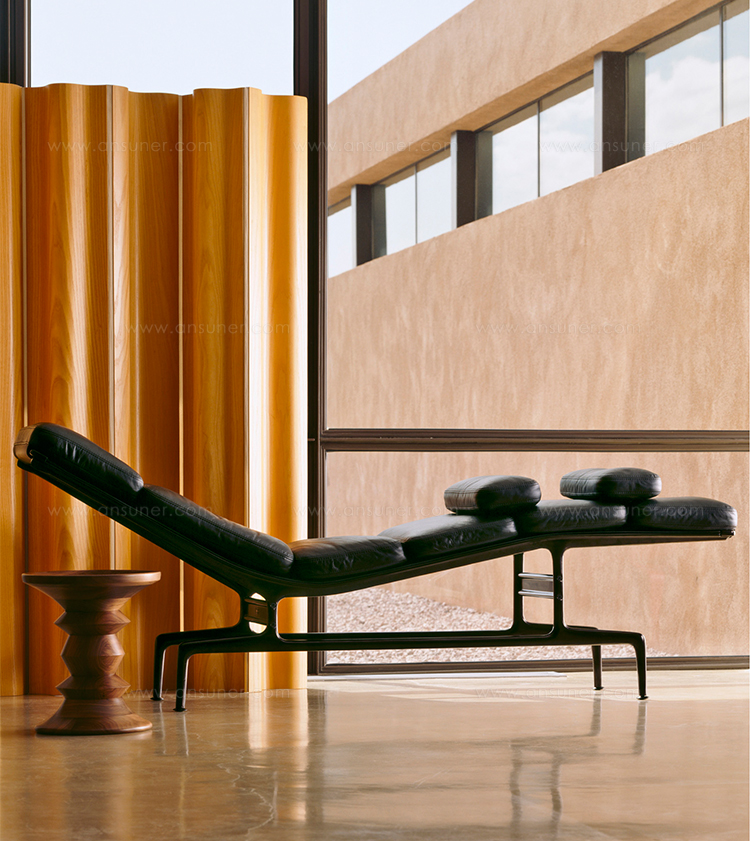 Eames躺椅柔软、舒适,且只有45.72厘米宽。躺在上面时,您会自然地将双臂折叠在胸前。如果您打瞌睡了,双臂则会立刻垂落在身体两侧,从而唤醒自己。这是一个供暂时小憩的美丽场所,可放在书房里、私室中或者行政办公室中。