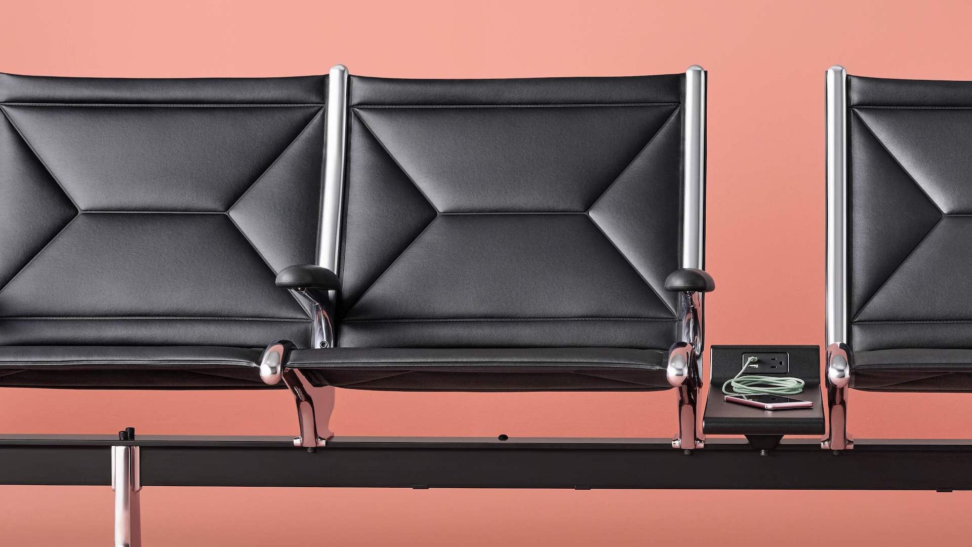Eames Tandem Sling座椅最初设计于1962年,多年来一直为成千上万在机场、火车站和其他公共场合等候的旅行者提供了一方寸舒适之地,经受住了时间的检验。集成电源让人们可以放松身心,在最需要的时候接入自己的设备,边充电边享受,无需劳神费心。