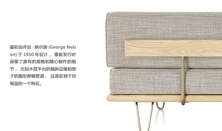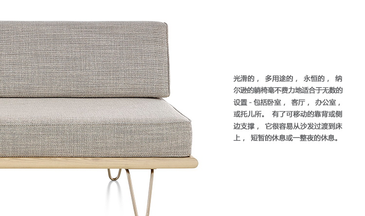 最初由乔治?纳尔逊(George Nelson)于1950年设计,重新发行时保留了原有的规格和精心制作的细节,比如木质平台的倾斜边缘和垫子的圆形焊缝管道,这是区别于仿制品的一个特征。不锈钢发夹腿或锥形木腿给它的经典纳尔逊触摸。缓冲增强了双密度泡沫,以更多的支持和耐久性,同时保持其轻质美学。随着住宅和公寓的面积不断缩小,纳尔逊牌(Nelson)躺椅等多功能安博网页版为任何房间增添了一种实用而精致的感觉。