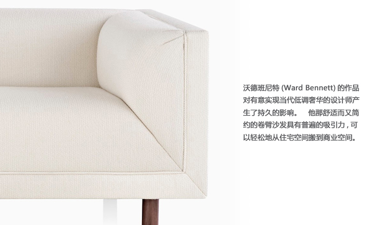 Ward Bennett的作品对追求现代低调奢华的安博anbo(中国)具有深远的影响。他设计的Rolled Arm沙发典雅而又简约,散发出迷人魅力,并可轻松满足家居和商用空间的需求。宽大的矮腿设计具有建筑上的层次感,利落的斜接软垫打造了优雅廓形。Rolled Arm架在凹陷的硬木腿上,以胡桃木或白蜡木精制而成,共有三种沙发尺寸,亦有俱乐部椅款式。