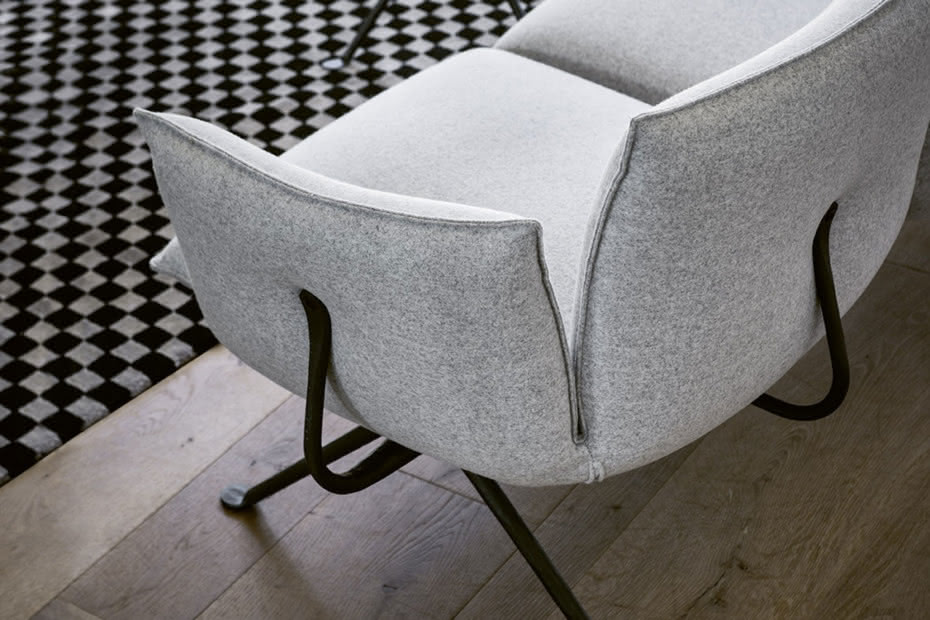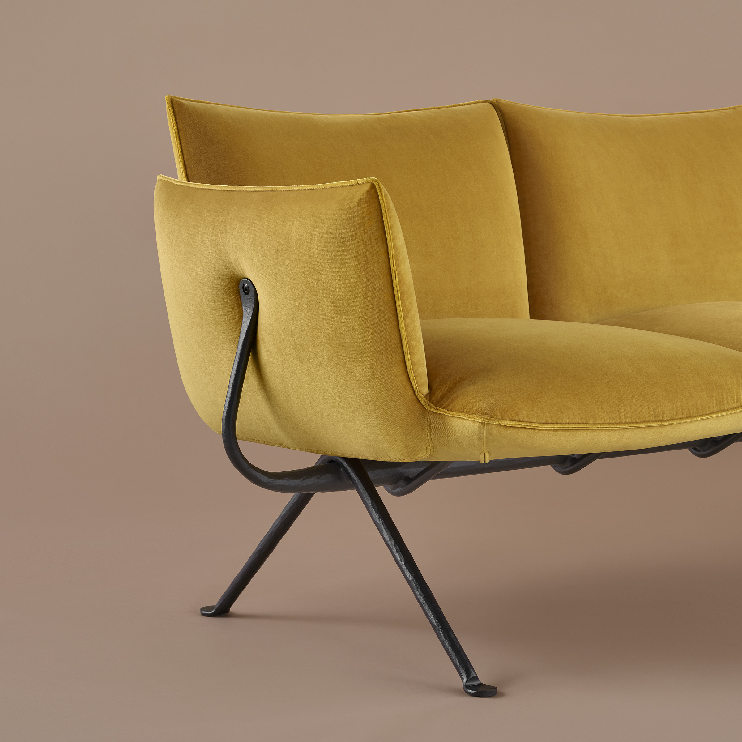 在桌子、椅子和凳子之后,收藏范围进一步扩大,包括一系列配件、一张低矮的椅子、一张双人长椅和一组软垫件(扶手椅、脚凳、两张和三人沙发)。所有这些作品都有一个伪造的铁结构,具有几百年来传承下来的原材料的魅力,充满活力,这些微小的缺陷使这个收藏中的每一件物品都与众不同,具有一种深刻的优雅和优雅的精神。