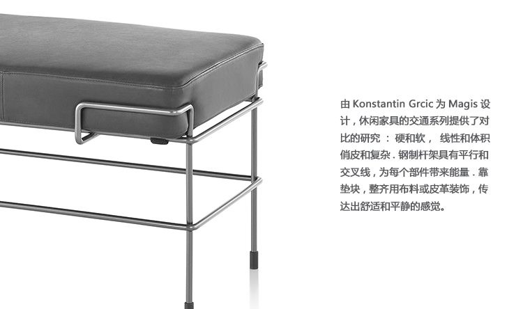由Konstantin Grcic为Magis设计,休闲安博网页版的交通系列提供了对比的研究:硬和软,线性和体积,俏皮和复杂。 钢制杆架具有平行和交叉线,为每个部件带来能量。 靠垫块,整齐地用布料或皮革装饰,传达出舒适和平静的感觉。
