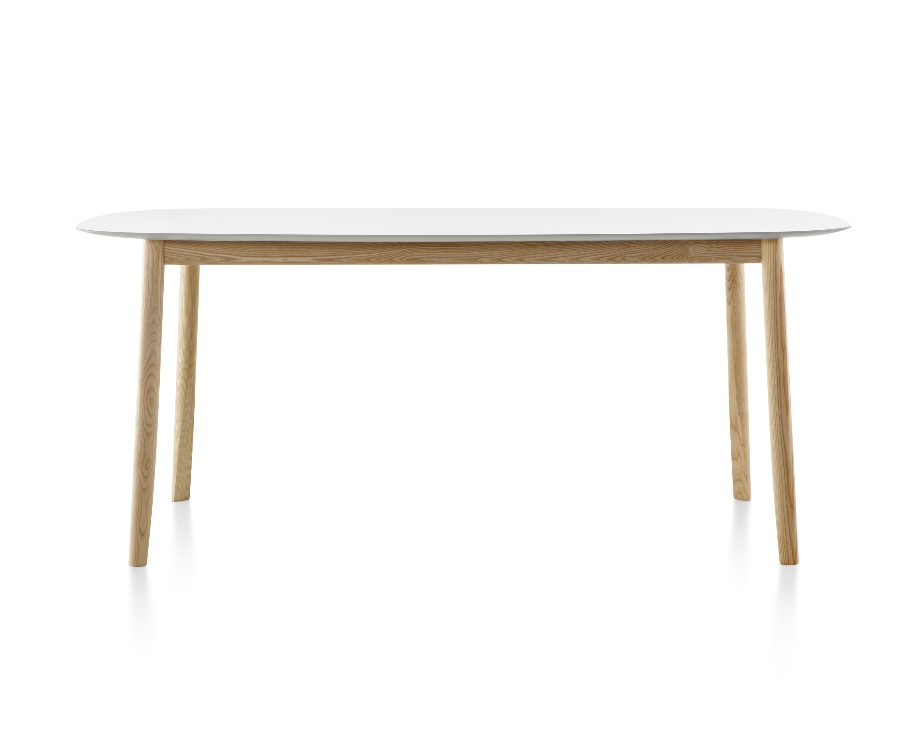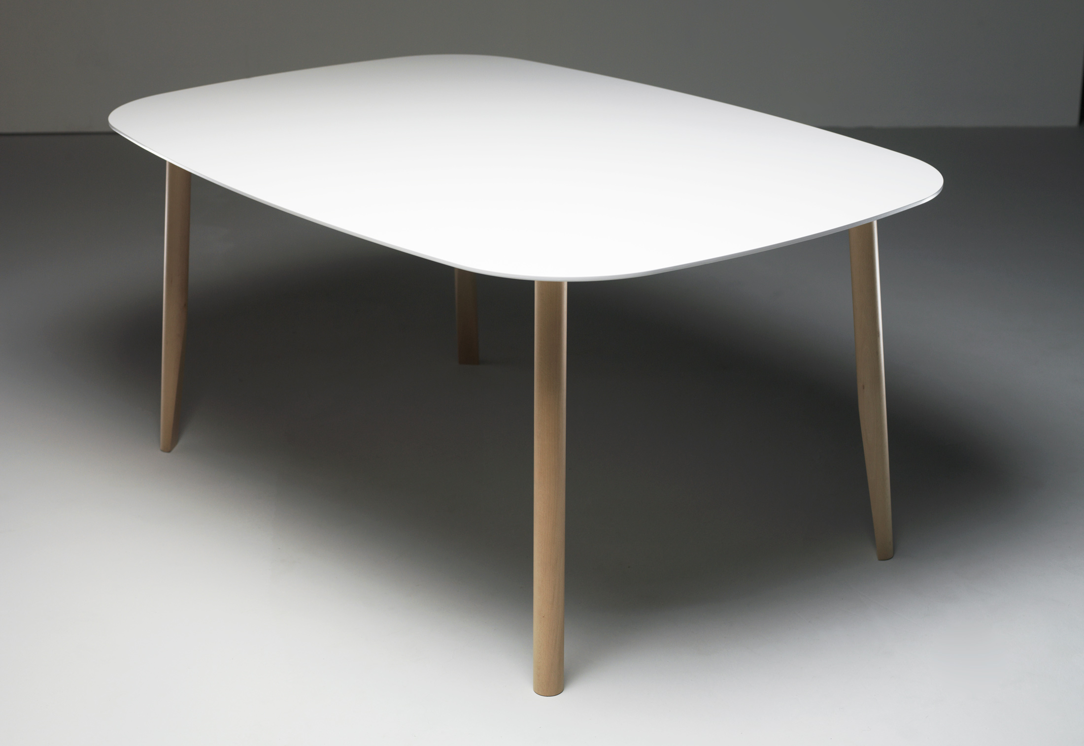 这张桌子有两种尺寸,腿和框架是实心的天然蜡灰,腿是雕刻和“切片”的,所以它们看起来很精致,而且很结实。光滑的顶部是中密度纤维板白色漆。