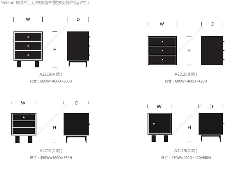 Nelson 床头柜 系列尺寸/示意图