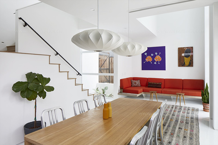 Nelson Saucer Crisscross Bubble Pendant杯托型十字气泡吊灯是George Nelson的一款经典设计,其下层结构中的对分图案能给灯罩留下一个很可爱的轮廓。与本款吊灯配套的6英尺的吊绳可以将吊灯牵在吊线板上,悠然悬挂在头顶。Nelson最先于1952年设计了这些气泡灯,当时他偶尔碰到一组很喜欢的瑞典吊灯。但其高昂的价格让Nelson产生了自己设计的念头。其结果就是一系列简单的球状外形面世了,比如圆圆的苹果、宽大的杯托、加长的雪茄和造型优美的梨,等等。