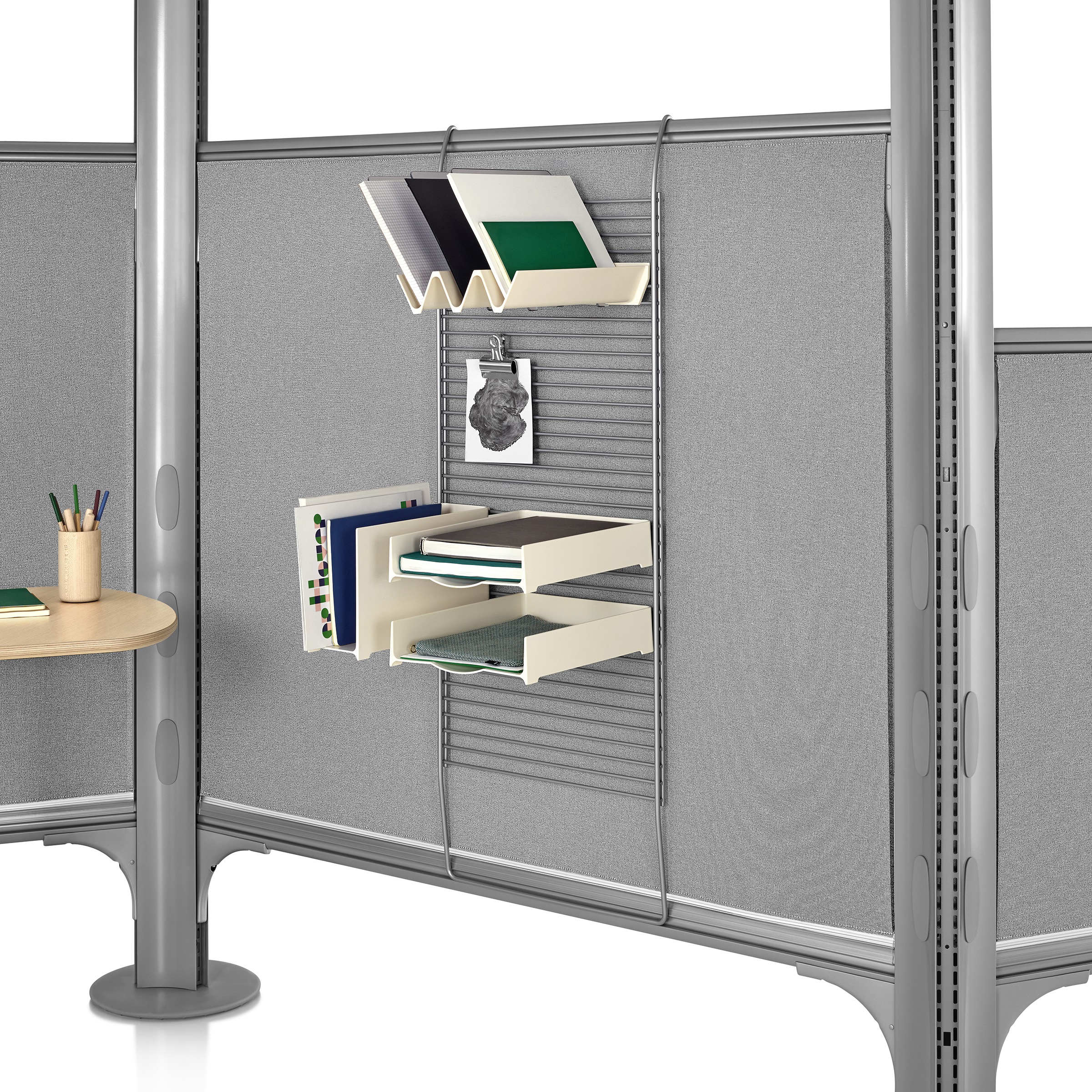 强大到足以容纳活页夹,电话簿和文件夹。保持直立以便于使用。钢轨连接或独立的。
