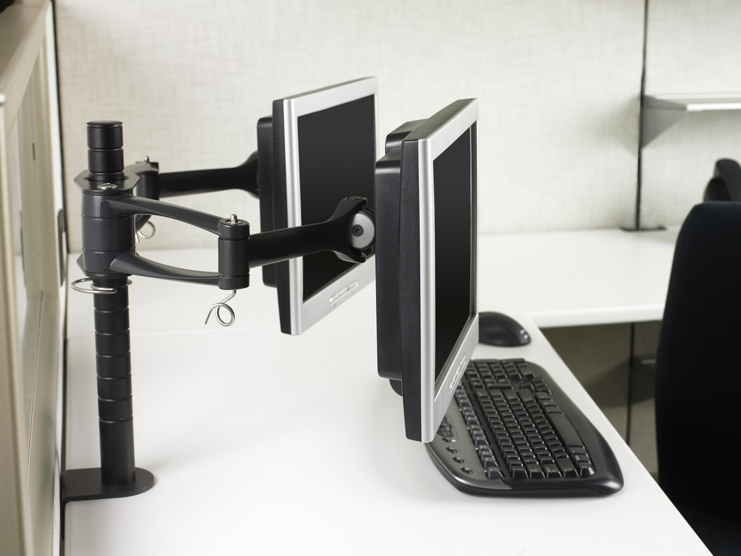 Wishbone系列的精致设计释放了工作台面上的空间,同时允许您将屏幕定位在适当的距离,以缓解颈部和眼睛疲劳。