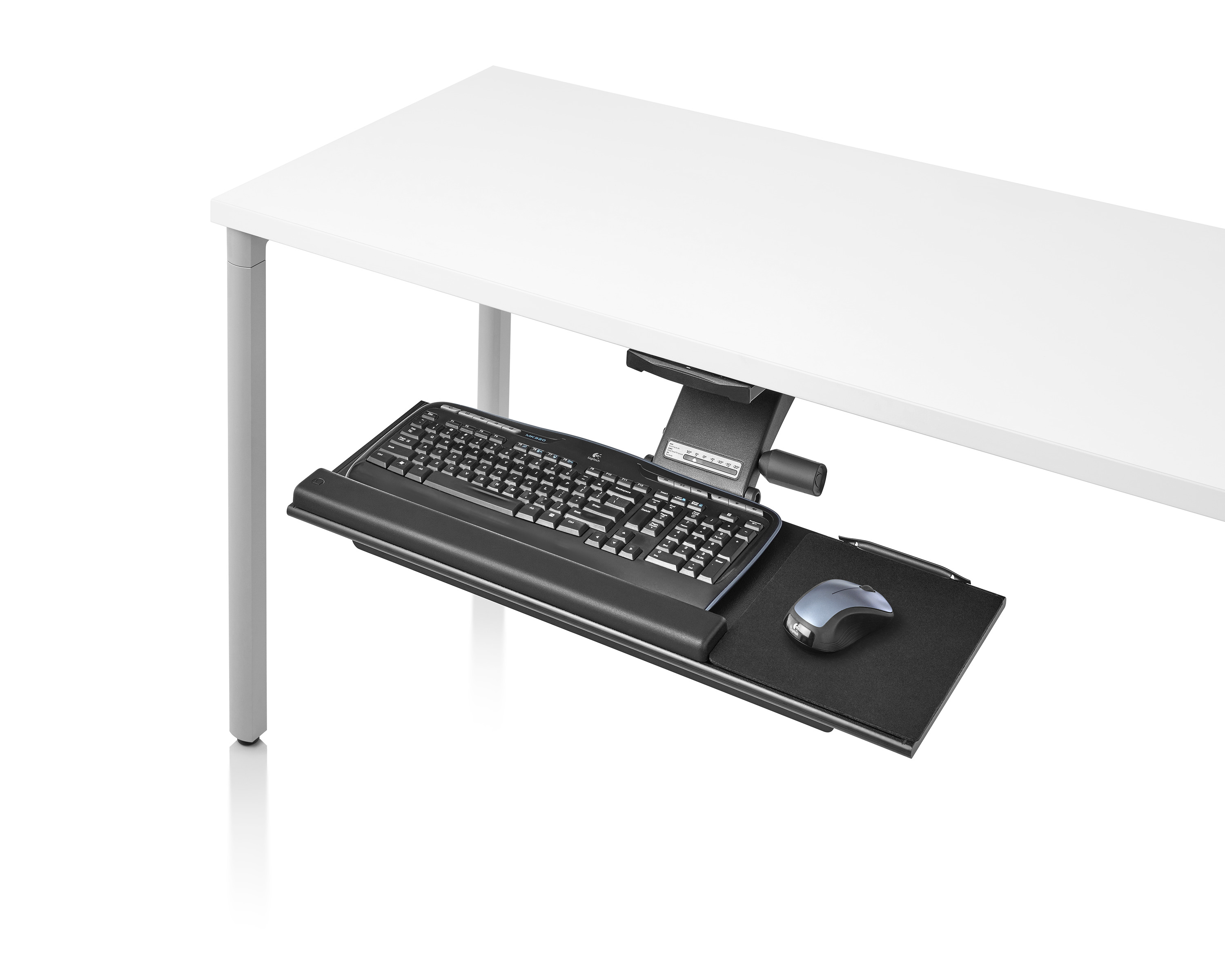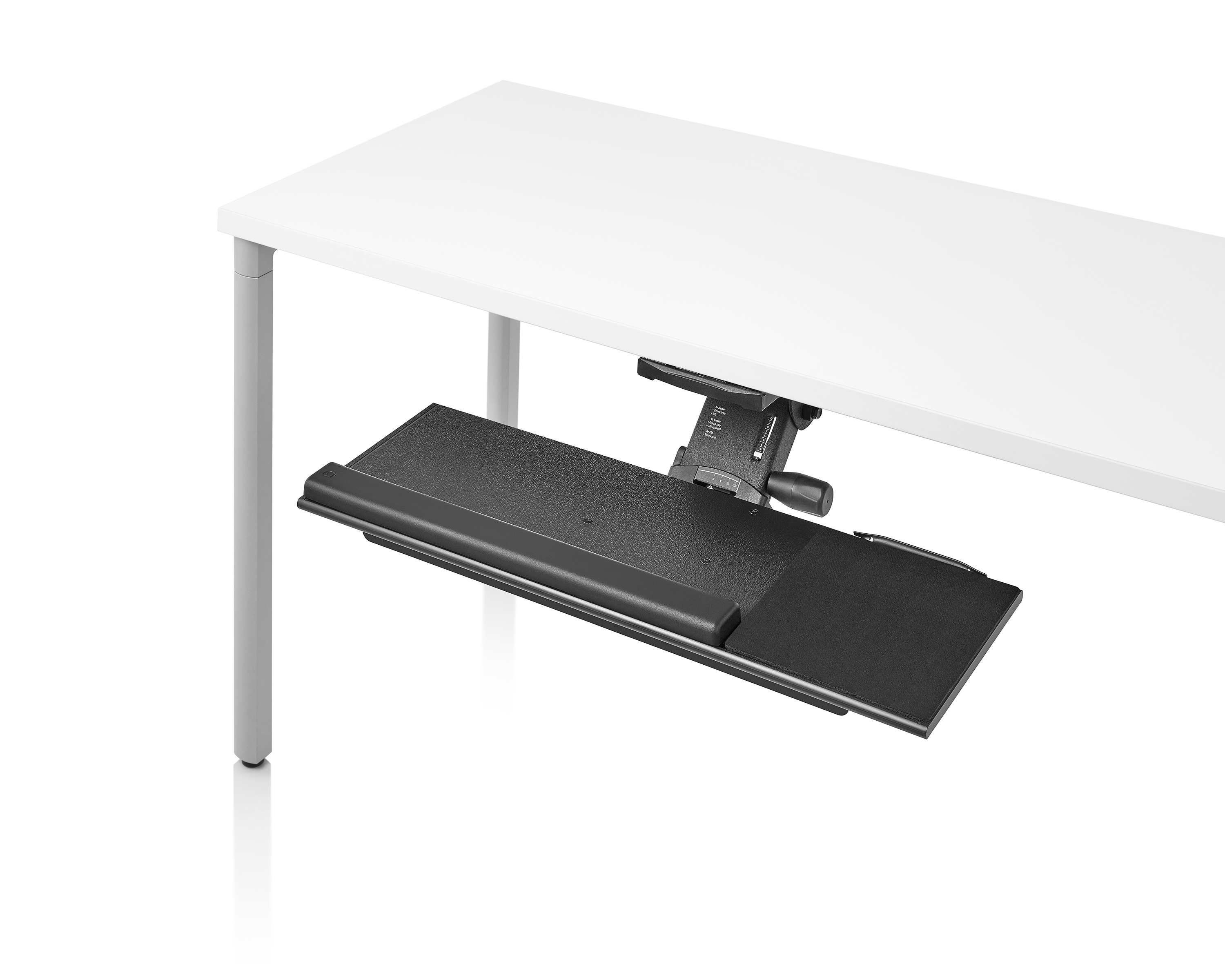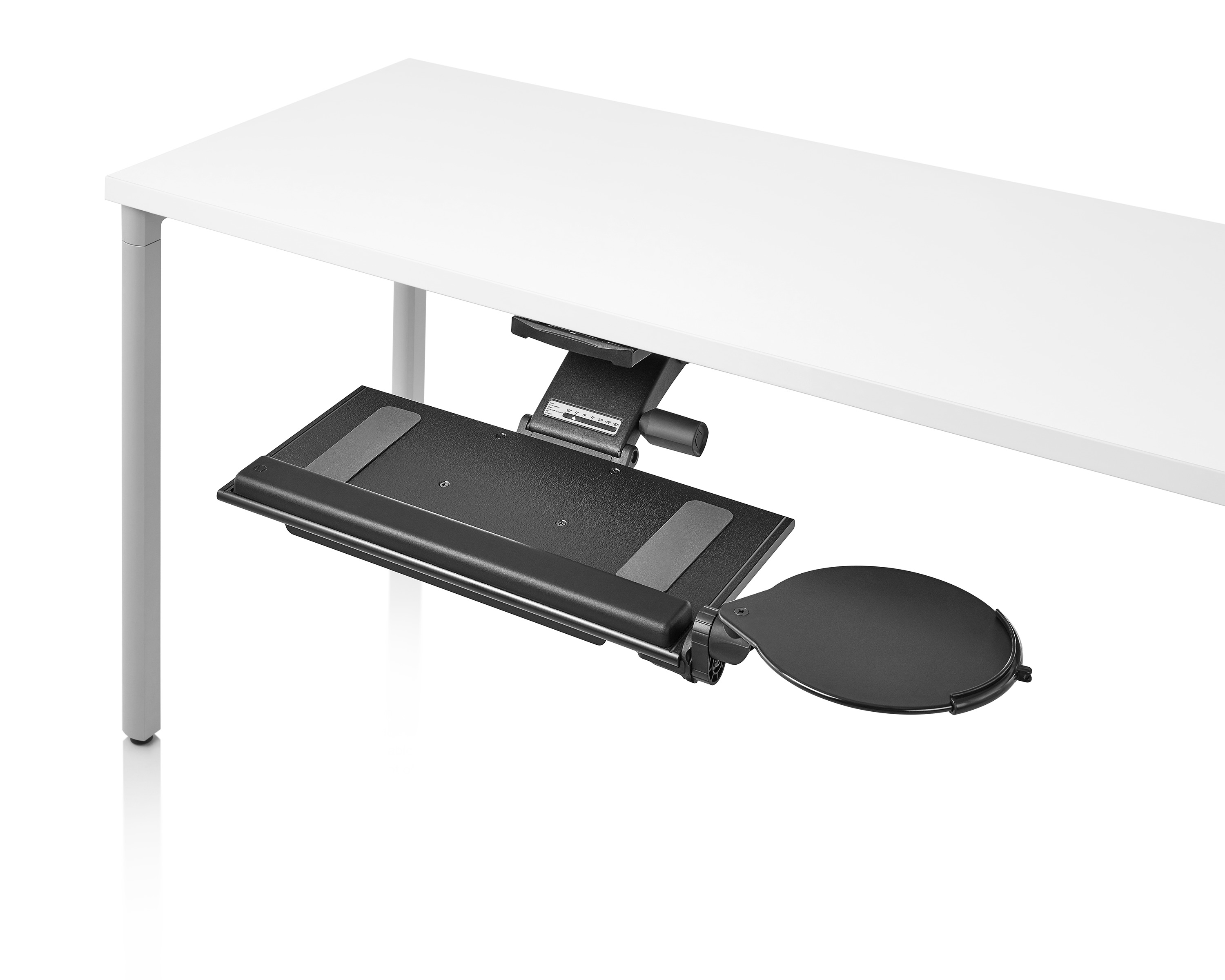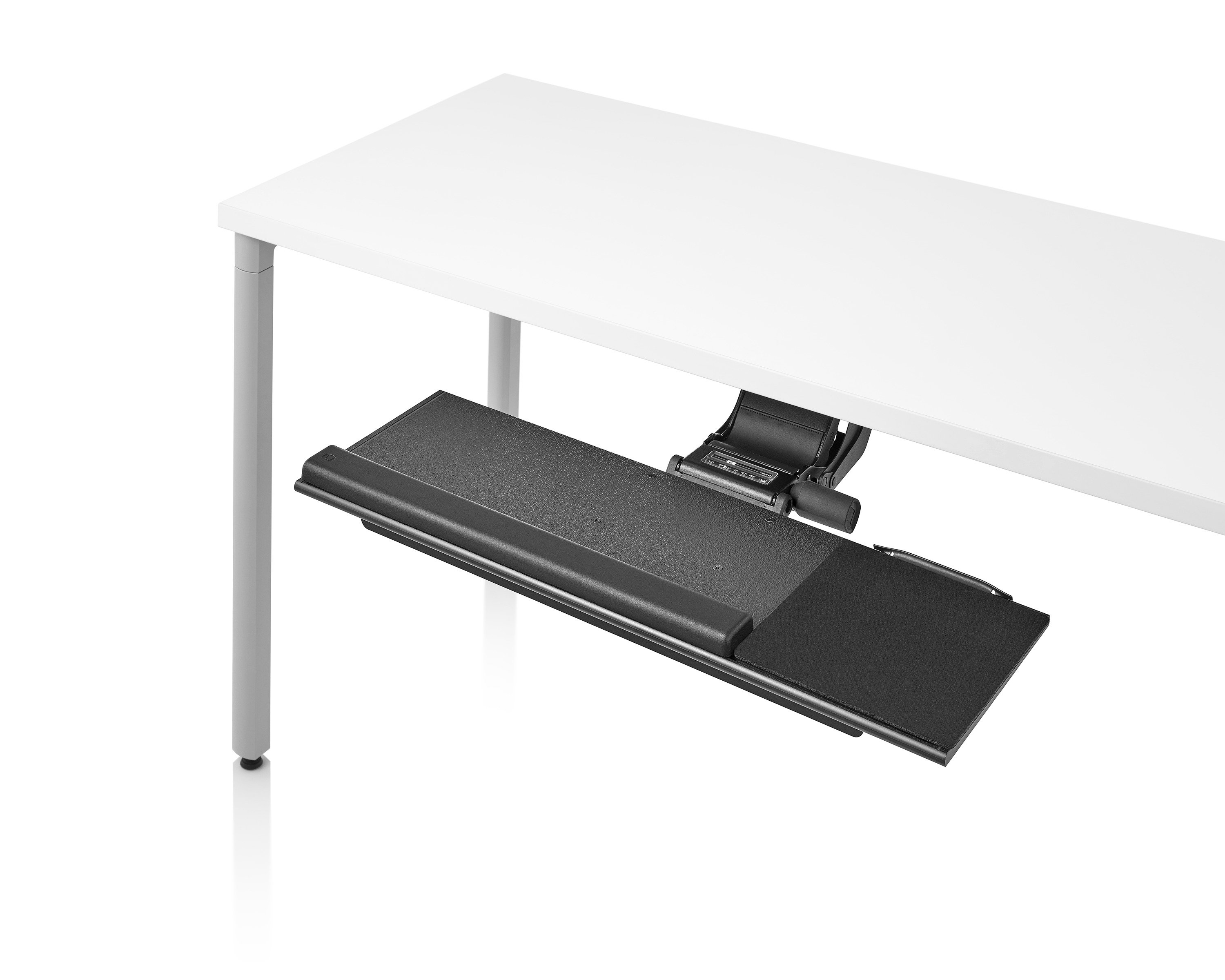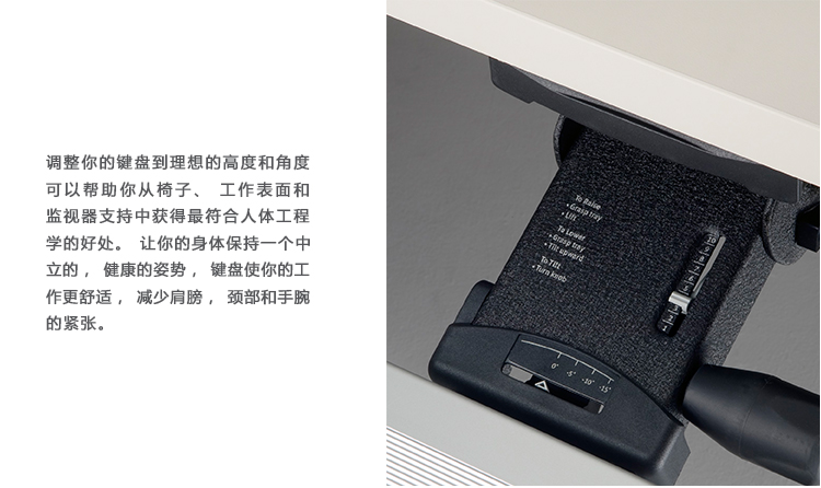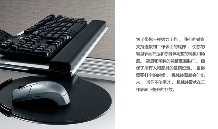 为了像你一样努力工作,我们的键盘支持连接到工作表面的底部,使你的键盘表面在适和你身体定位的高度和角度。高度和倾斜的调整范围很广,确保了所有人和安博网页版的健康位置。当你需要打字的时候,机械装置就会伸出来,当你不使用时,机械装置就在工作表面下整齐的储存