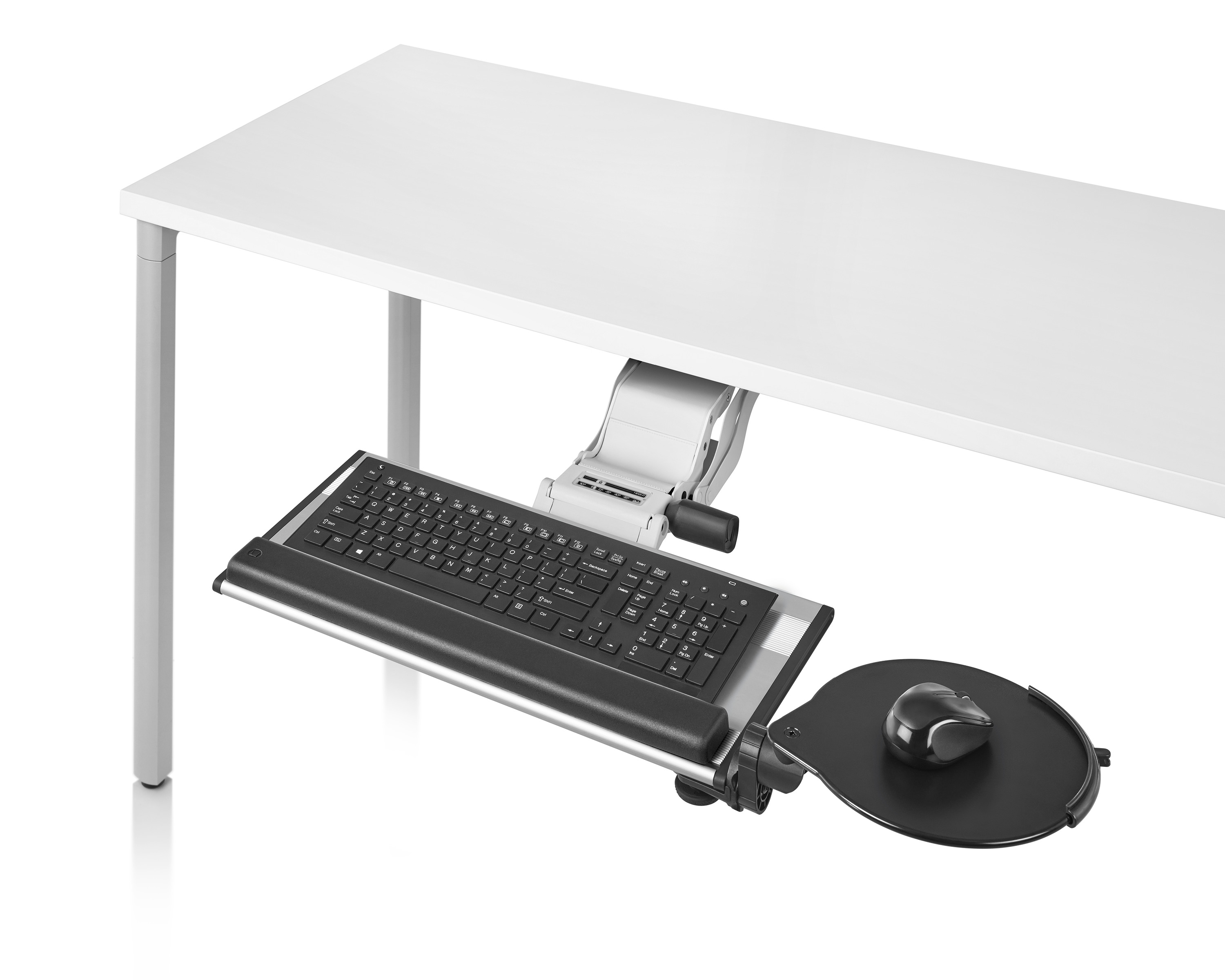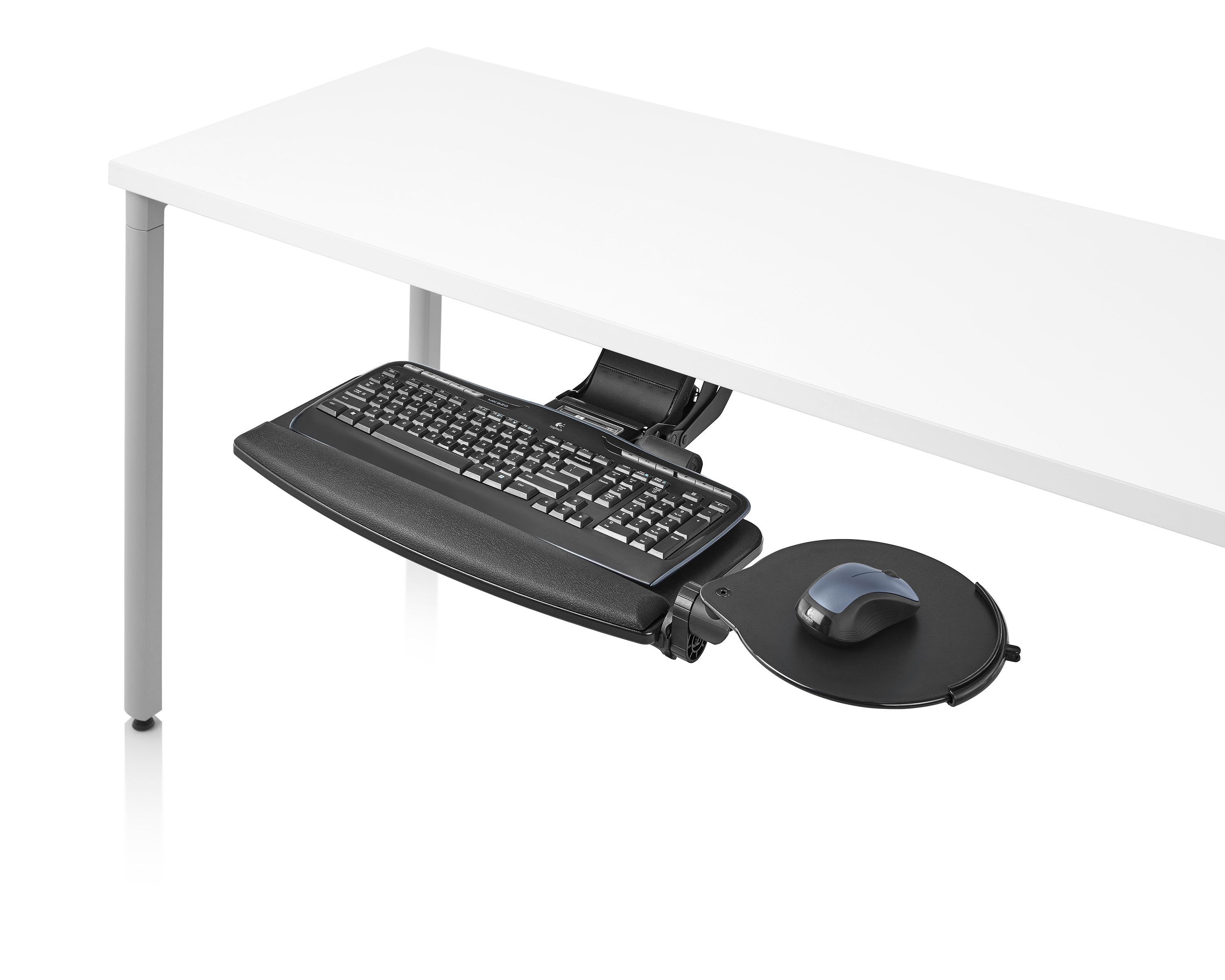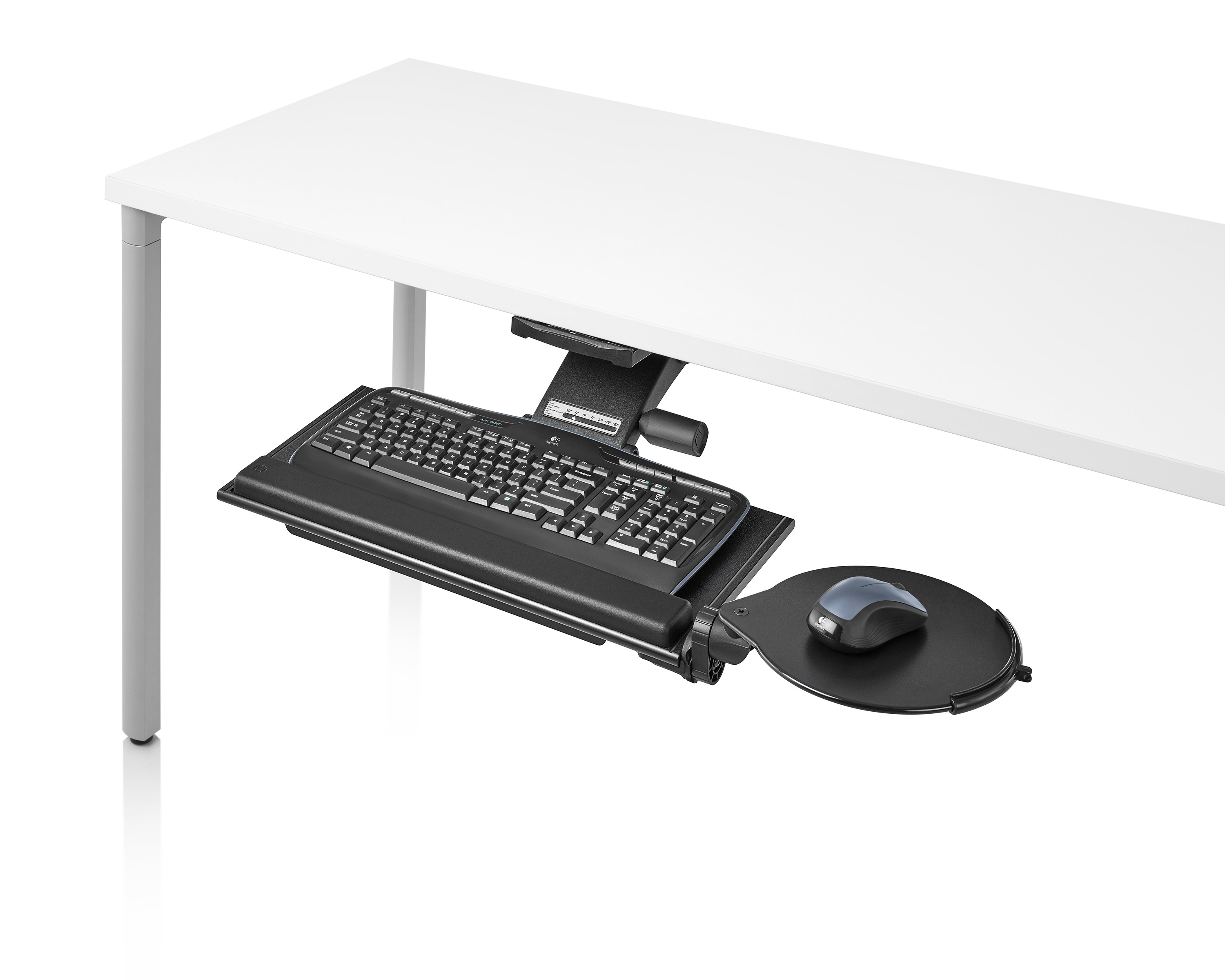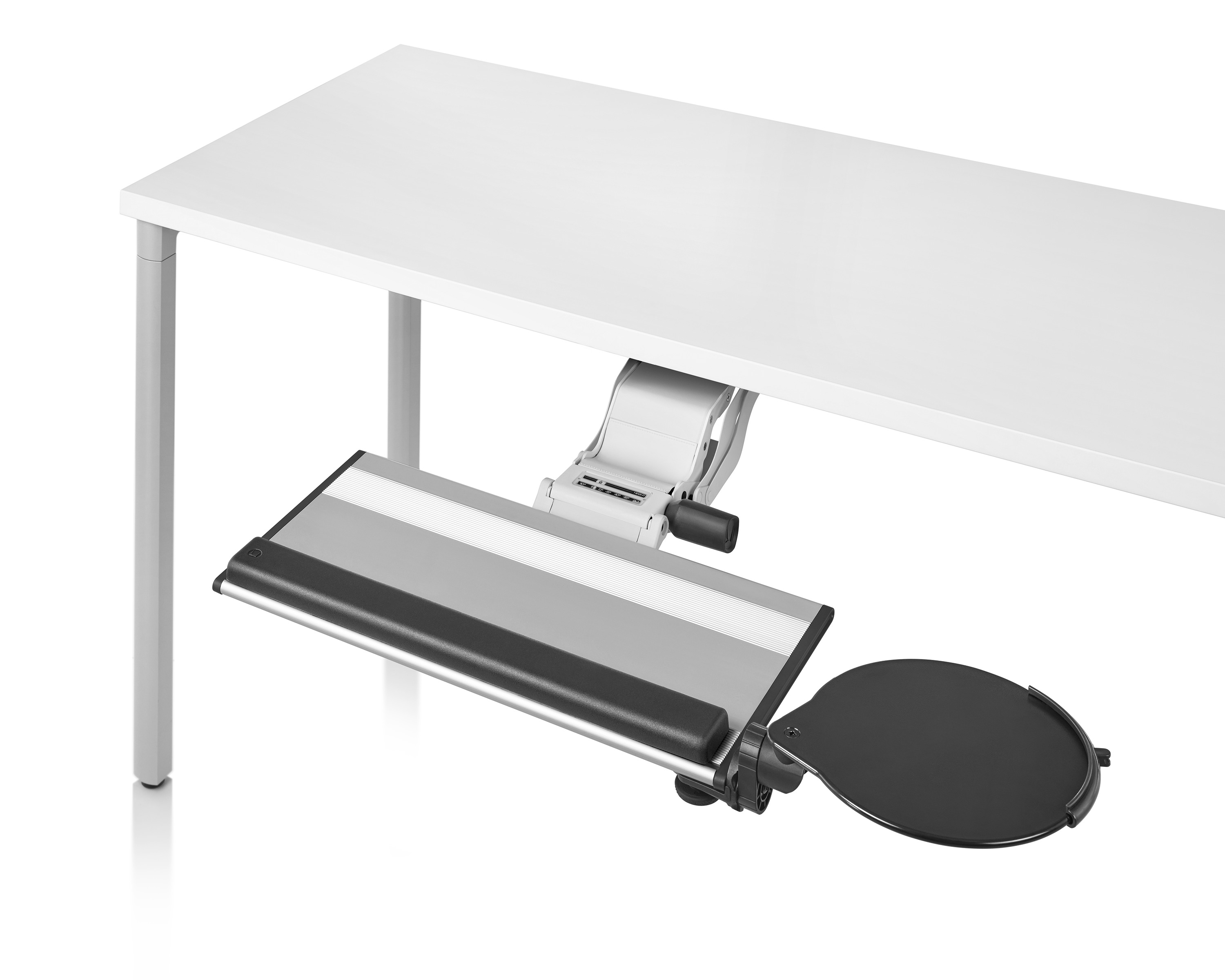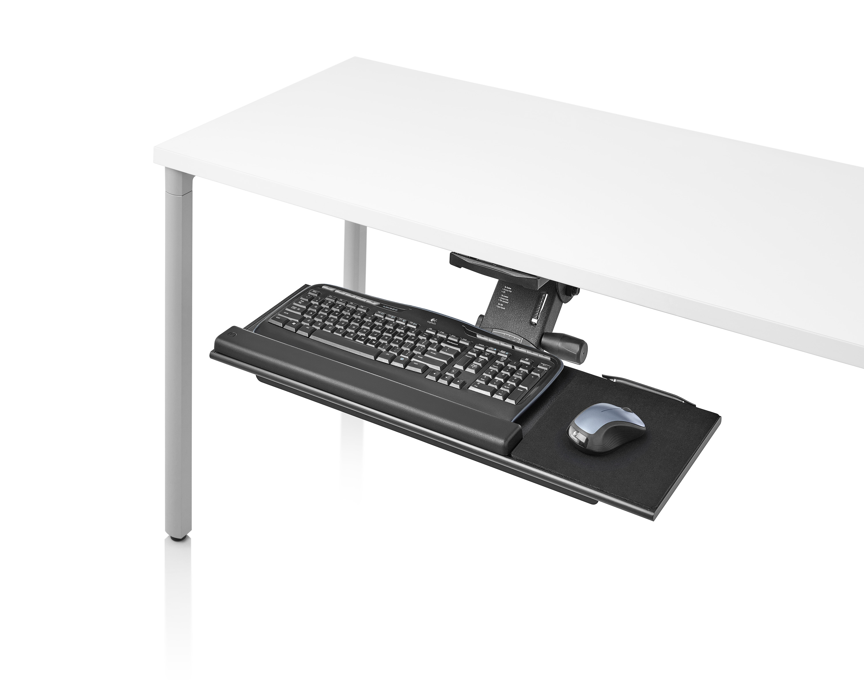 为了像你一样努力工作,我们的键盘支持连接到工作表面的底部,使你的键盘表面在适和你身体定位的高度和角度。高度和倾斜的调整范围很广,确保了所有人和安博网页版的健康位置。当你需要打字的时候,机械装置就会伸出来,当你不使用时,机械装置就在工作表面下整齐的储存