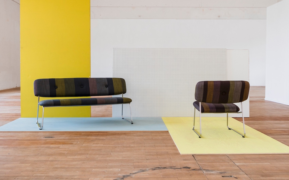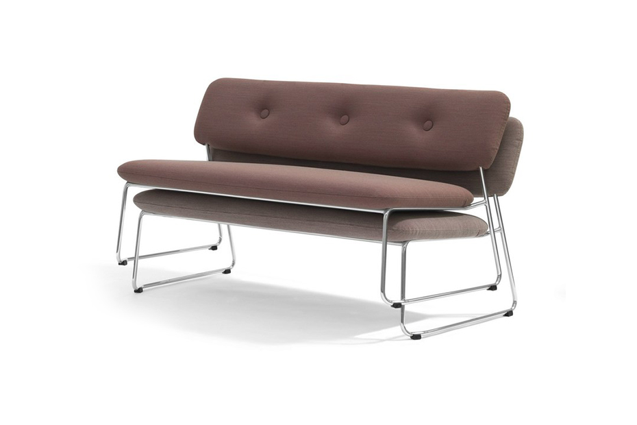 可叠放的沙发和带扶手的沙发。带软垫扶手的沙发不可叠放。木和钢制的框架。用织物或皮革覆盖的CMHR聚氨酯模压泡沫填充物。“绿色”铬合金钢制框架,铬III。塑料英尺。