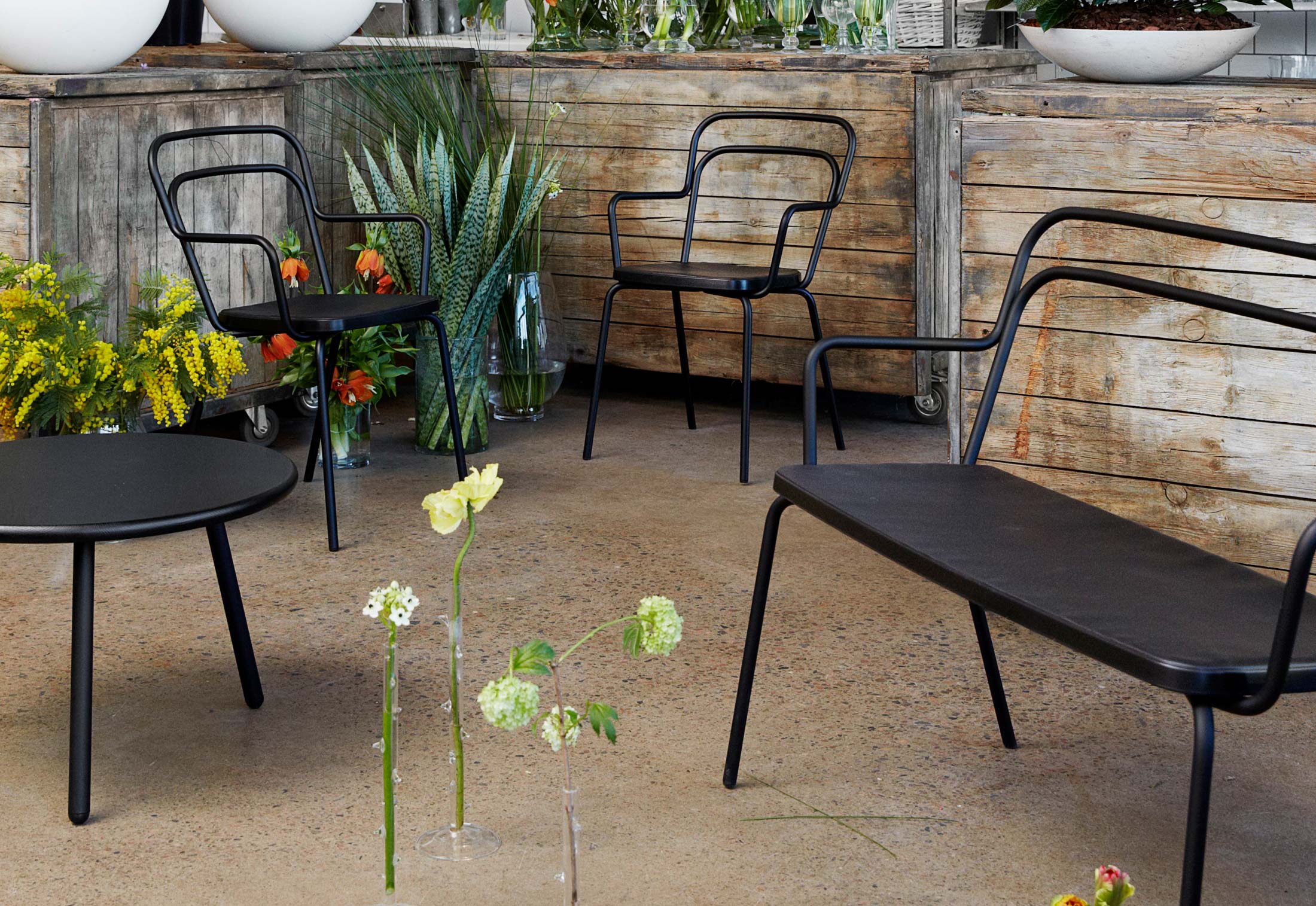 Kaffe椅子同样适用于室内和室外。它经制造可承受对耐用性有很高要求的室外环境,但在室内也是理想的选择。座椅的“良好使用”外观营造出舒适感,舒适的印象。在设计方面,Kaffe是对经典咖啡厅椅子的一种较正式的表达;它的简单,基本的线条与自然的色彩相匹配-浅灰色,灰色和黑色。Kaffe系列包括椅子,安乐椅,沙发和桌子。Kaffe是可堆叠的上漆管状钢管椅子。模压座椅聚氨酯泡沫。