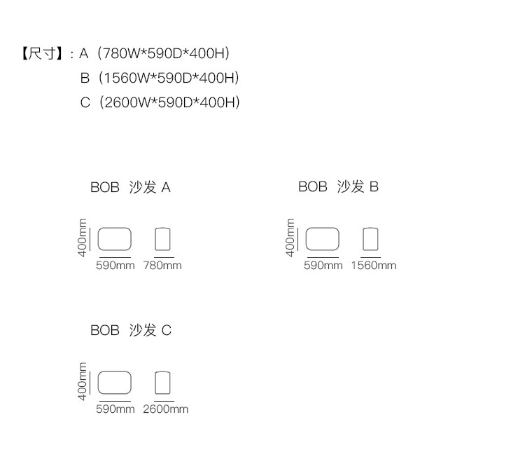 BOB 沙发 系列尺寸/示意图